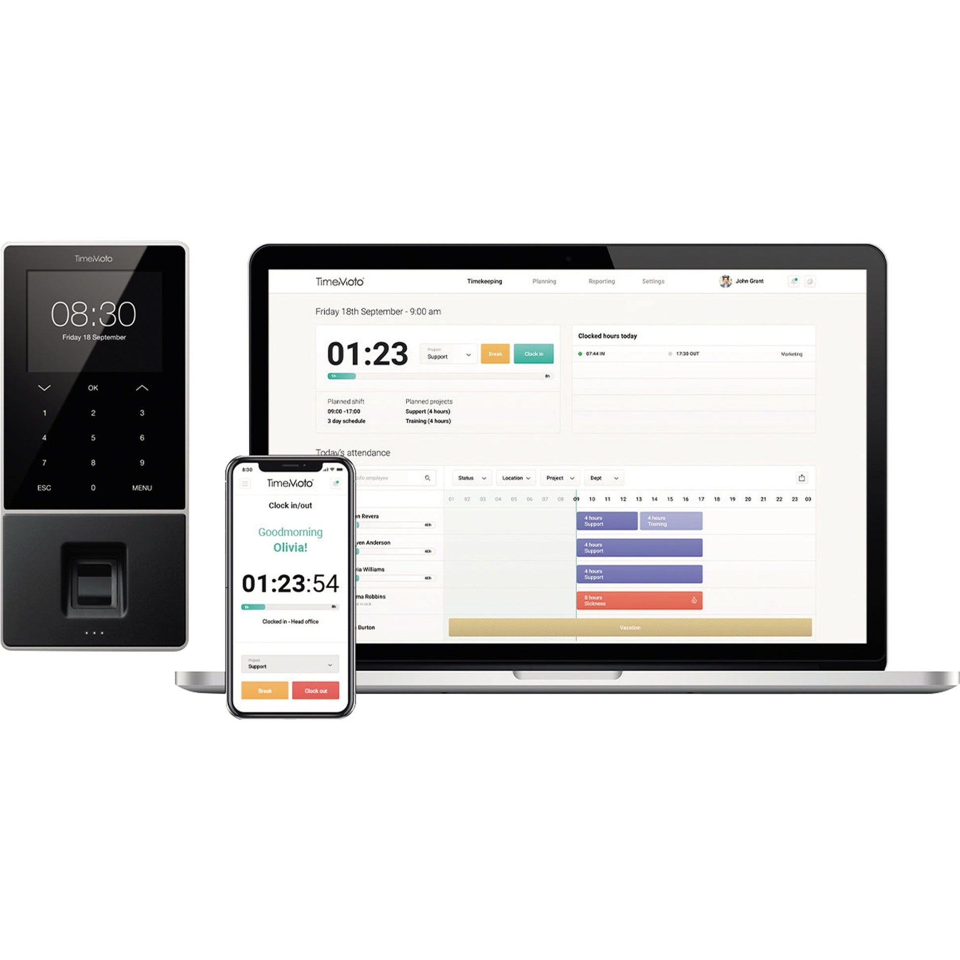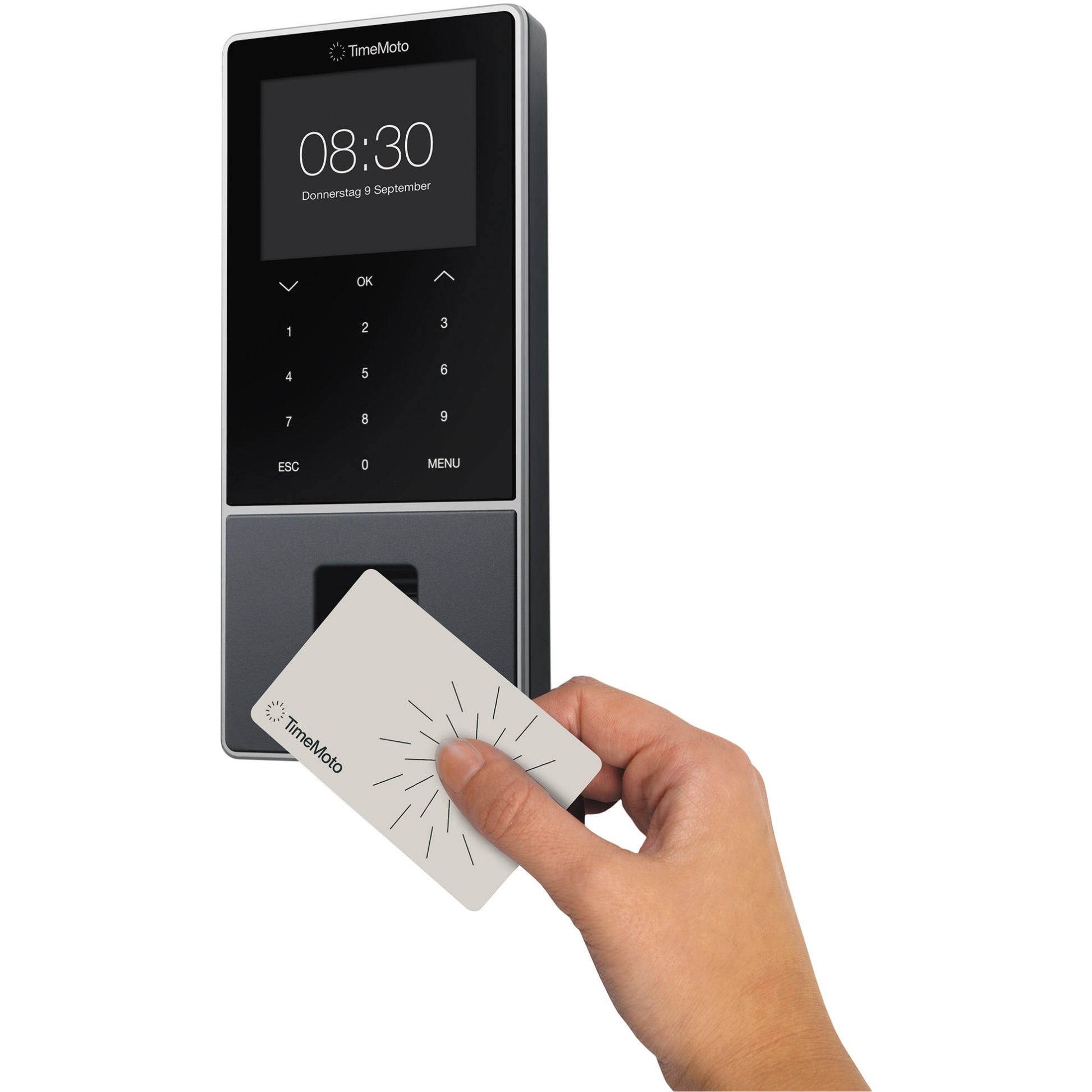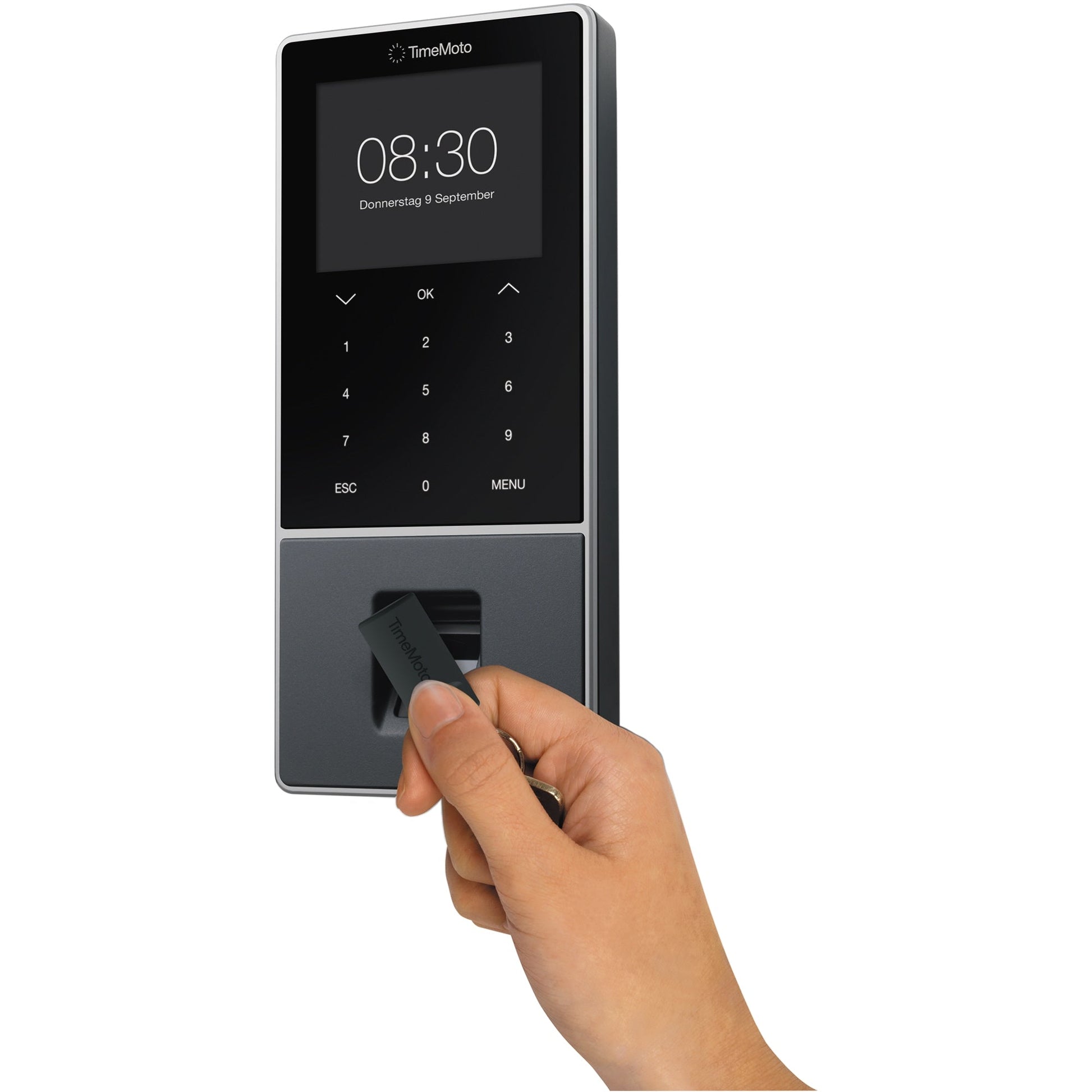 Bezeichnung: TIMEMOTO Zeiterfassungssystem TM-828 SC 9,95 x 21,5 x 4,43 cm (B x H x T) RFID-Sensor Windows® universell LAN, WiFi, USB-Host