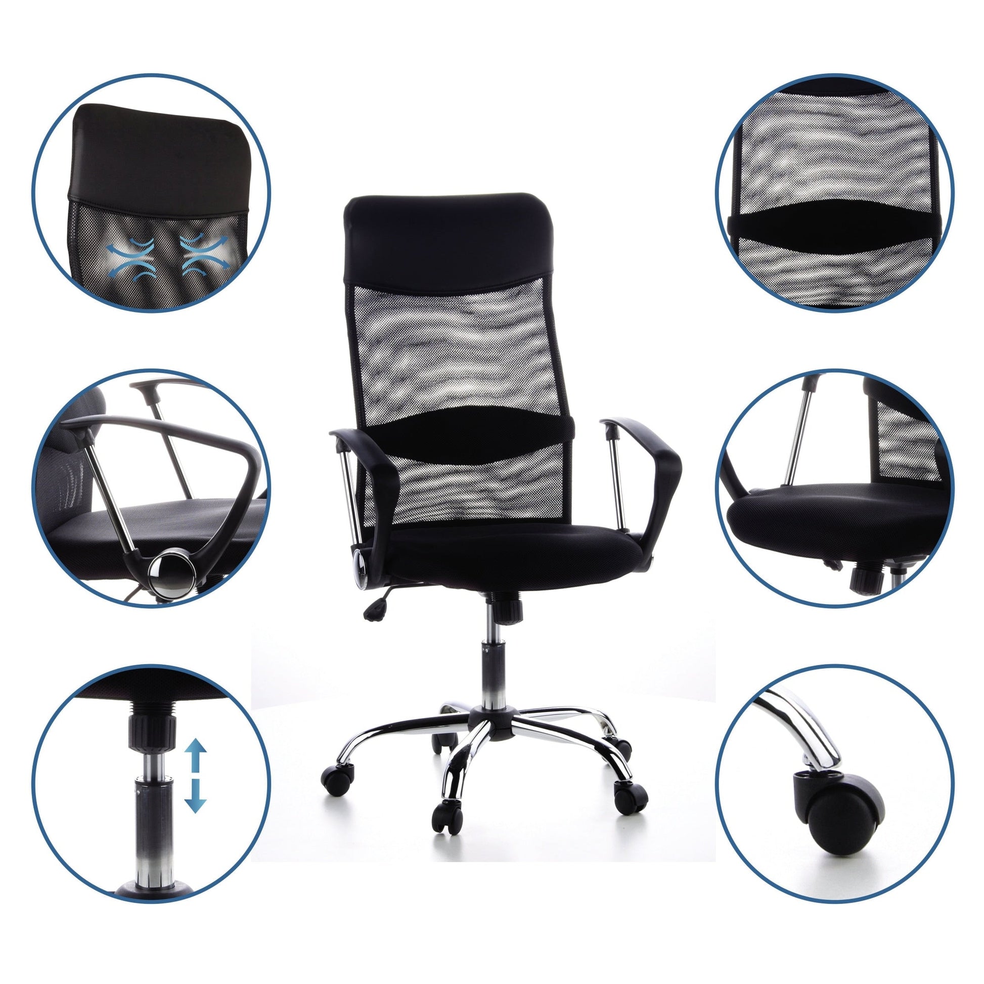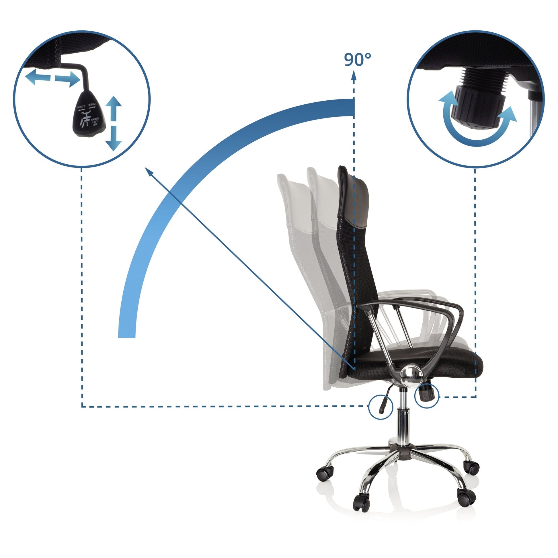 Bezeichnung: HJH OFFICE Bürodrehstuhl ARIA HIGH 48-56cm Wippmechanik Rolle hart gebremst (für Teppichboden) Chrom schwarz