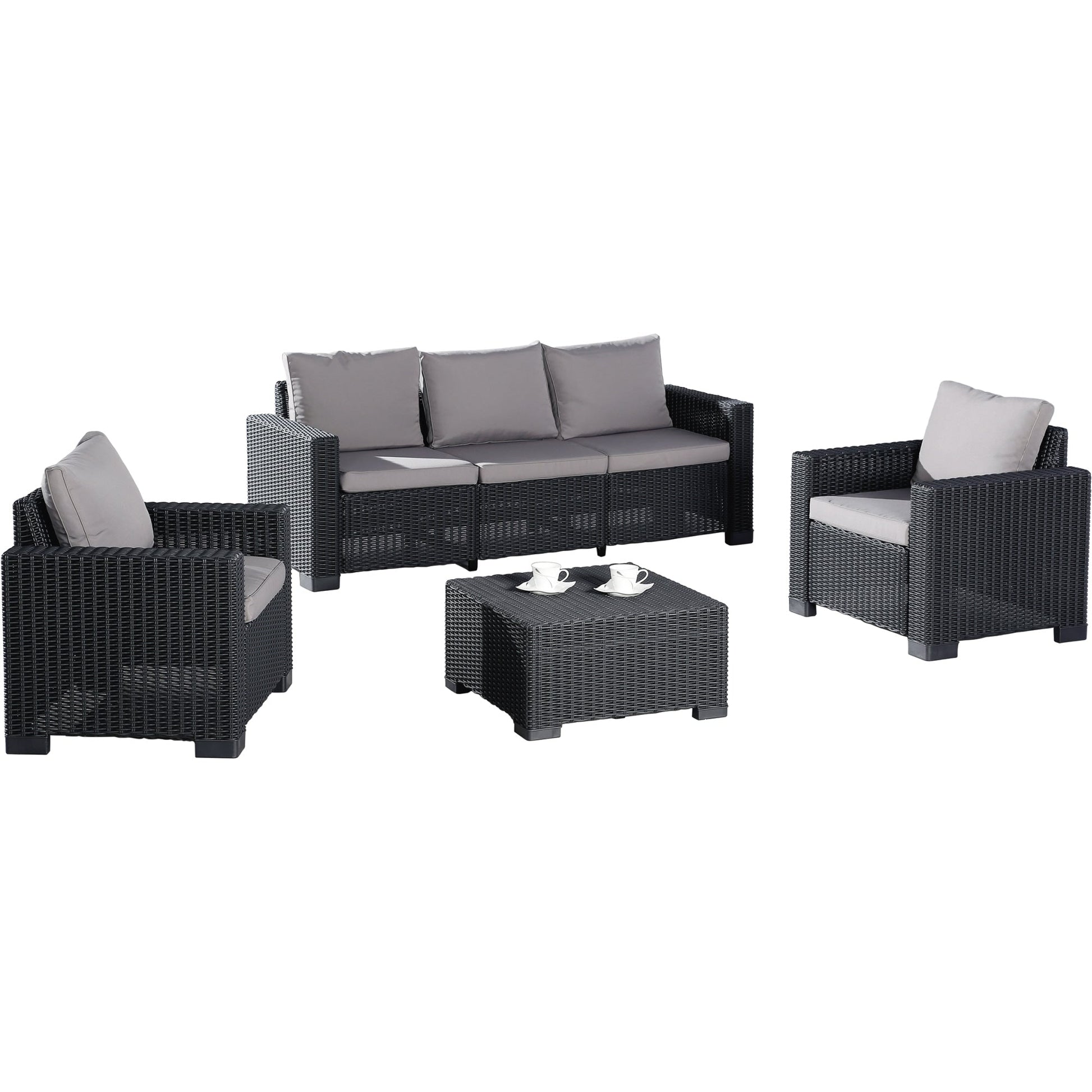 Bezeichnung: BEST Loungemöbel Mombasa 1 x 3-Sitzer-Bank, 2 x Sessel, 1 x Tisch 3-Sitzer-Bank: 199 x 68 x 72, Sessel: 83 x 68 x 72, Tisch: 68 x 35 x 68 cm (B x H x T)