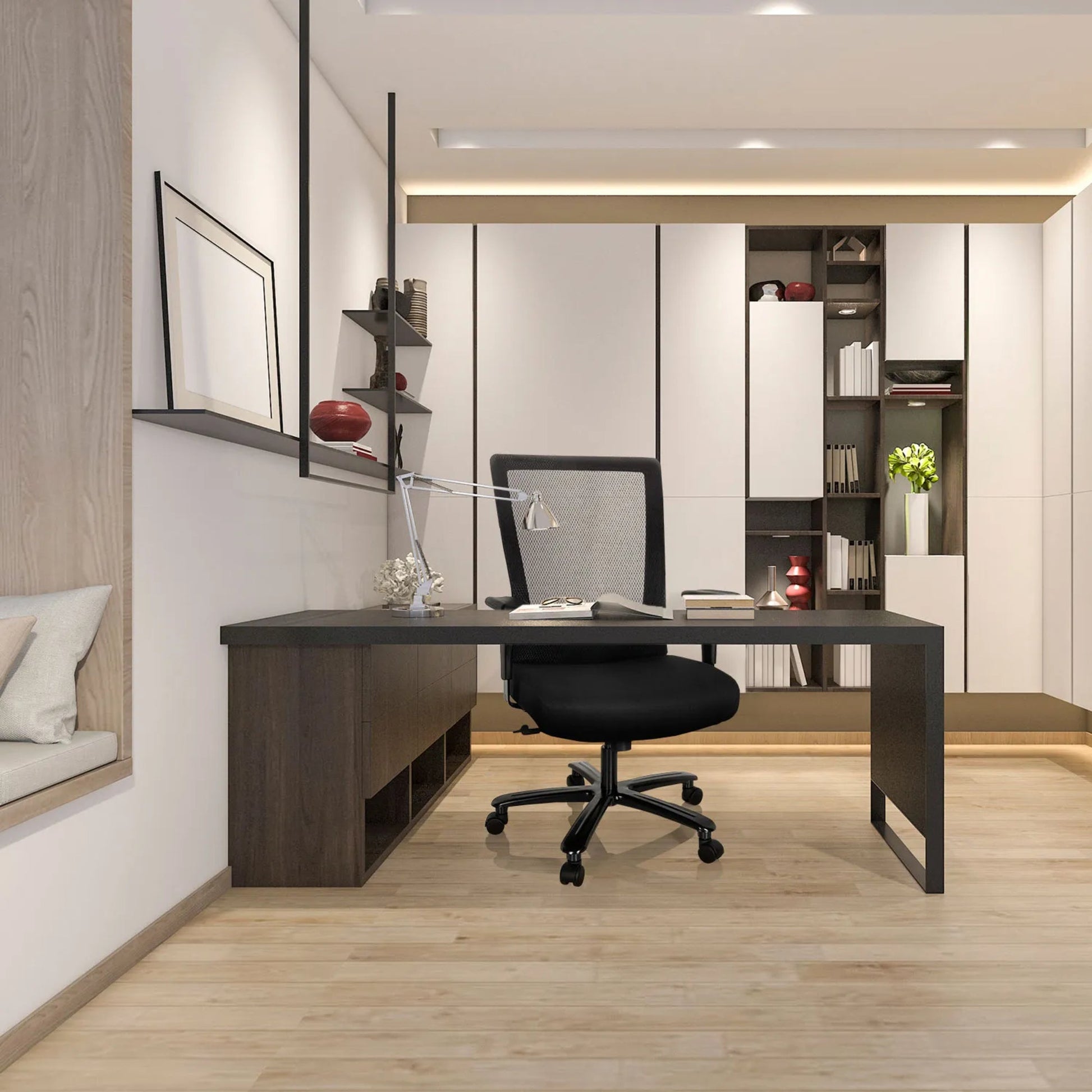 schwarzFür dieses Modell wurden besonders hochwertige Komponenten verwendet, um einen maximalen Komfort auch bei höherer Last zu gewährleisten. Die Abmessungen des Stuhls sind großzügig bemessen und sorgen für ein ausgesprochen bequemes Sitzgefühl. Die Rückenlehne kann nach hinten bewegt werden, wobei allerdings die Sitzfläche im gleichen Winkel verbleibt. Der Widerstand kann über einen Drehregler unter der Sitzfläche individuell eingestellt werden. Die Position ist über einen Hebel arretierbar. Die ergonomische Sitzfläche ist mit einer bequemen Polsterung versehen. Die Rückenlehne besteht aus atmungsaktivem Netzstoff, der stets für eine angenehme Luftzirkulation sorgt. Das robuste Fußkreuz bietet genügend Halt und sorgt für einen sicheren Stand. Ungebremste Sicherheitsdoppelrollen für Teppichböden. Der Aufbau ist in wenigen, einfachen Schritten durchzuführen.