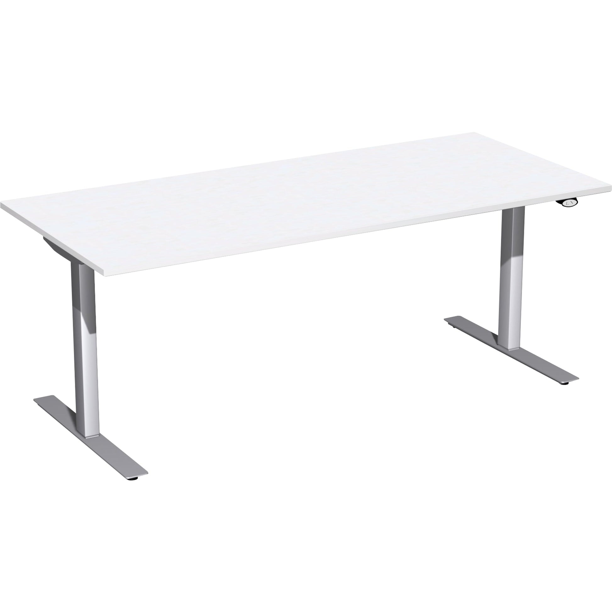 Bezeichnung: Geramöbel Schreibtisch Elektro-Flex Maße: 1.800 x 650-1.250 x 800 mm (B x H x T) Dreischicht-Feinspan, melaminharzbeschichtet weiß