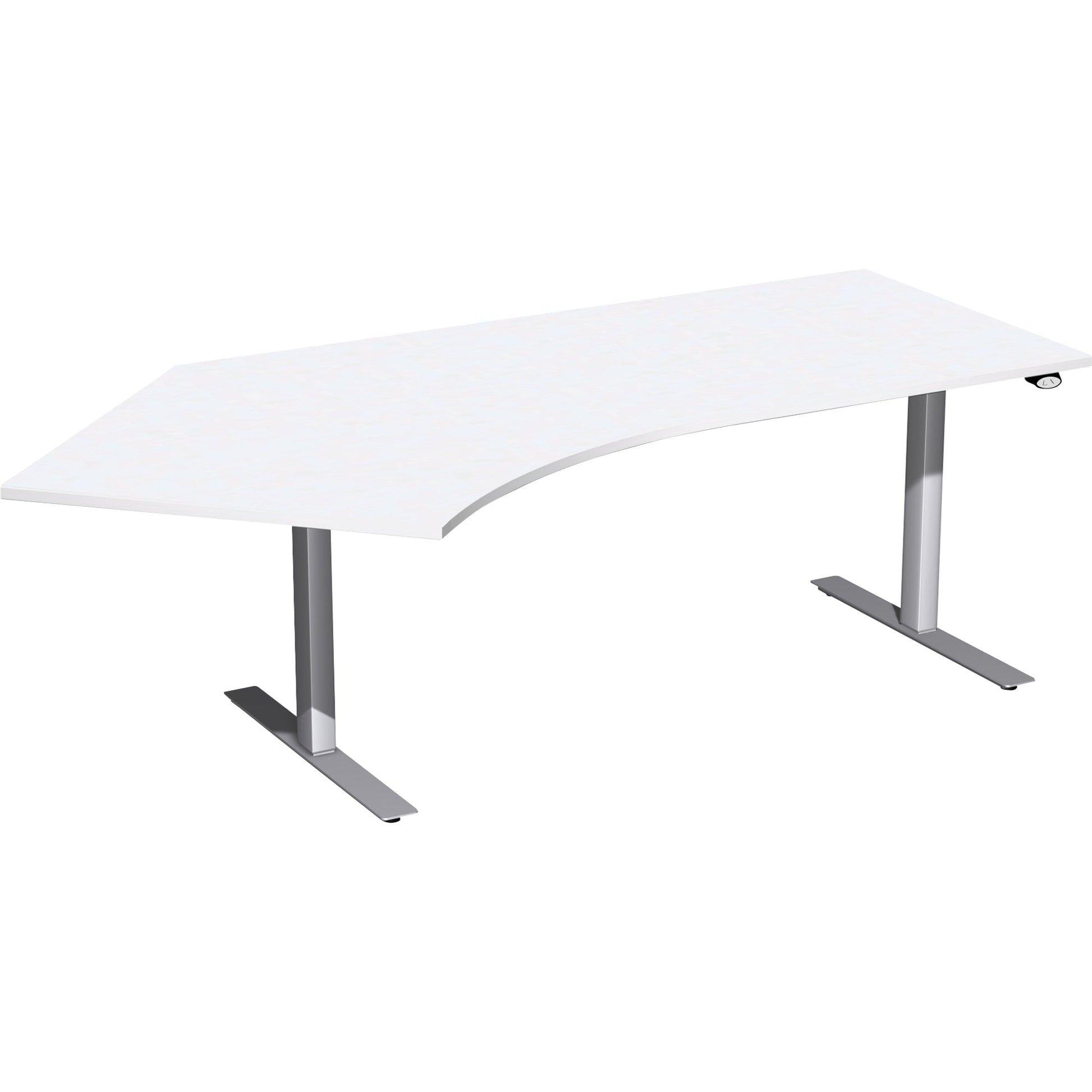 Bezeichnung: Geramöbel Schreibtisch Elektro Flex Maße: 2.166 x 650-1.250 x 800/1.131 mm (B x H x T) Dreischicht-Feinspan, melaminharzbeschichtet weiß