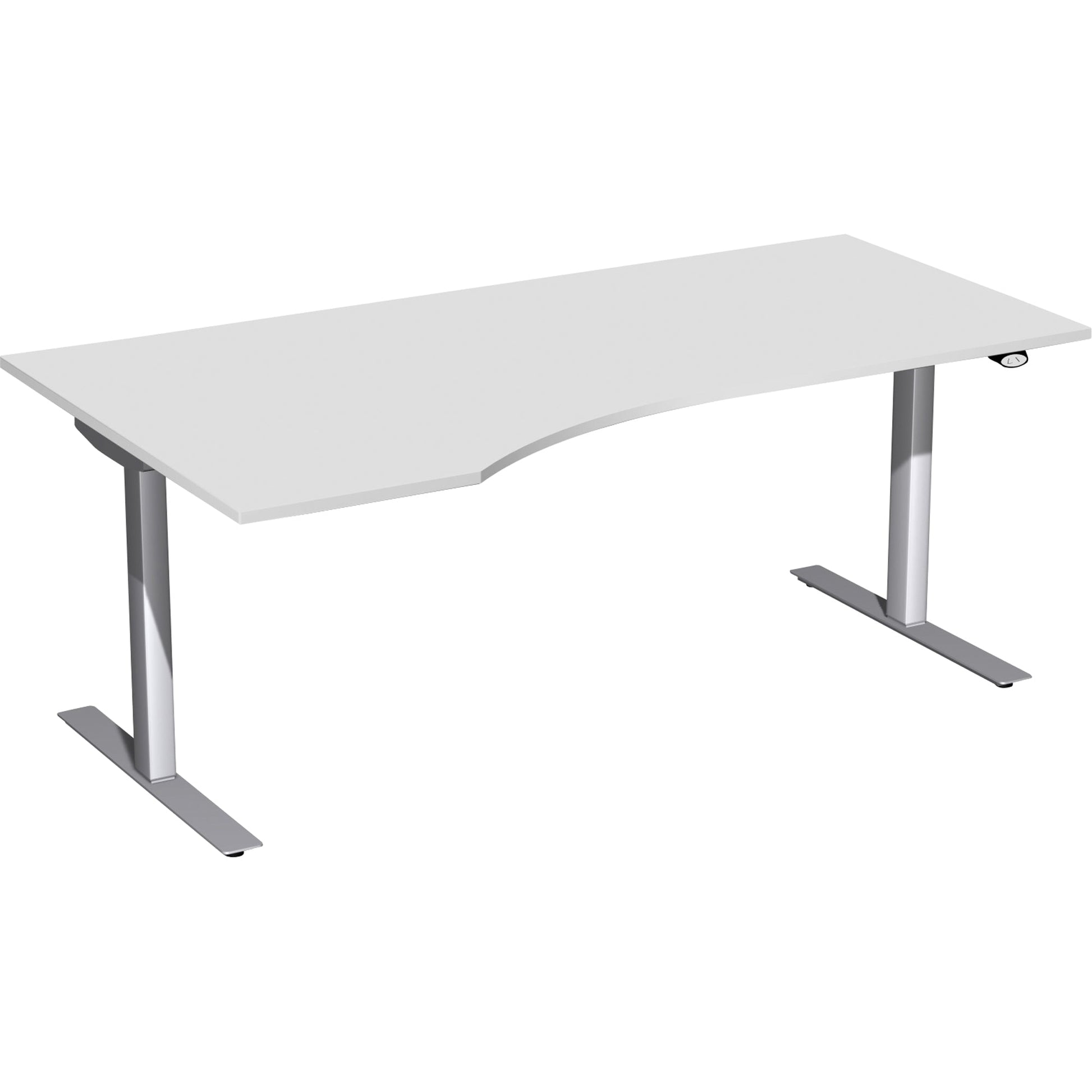 Bezeichnung: Geramöbel Schreibtisch Elektro Flex Maße: 1.800 x 650-1.250 x 800/1.000 mm (B x H x T) Dreischicht-Feinspan, melaminharzbeschichtet lichtgrau