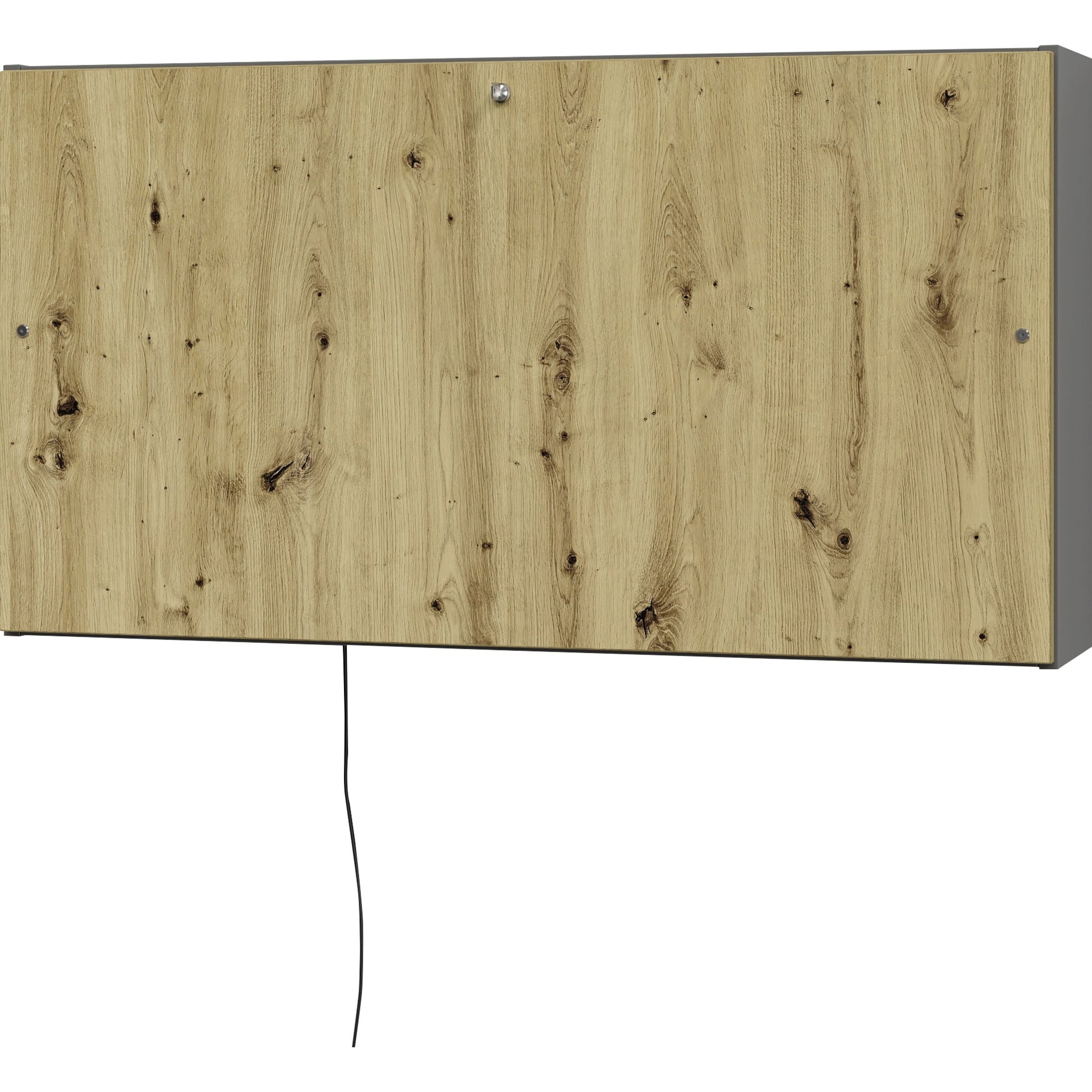 Ausführung des Inhalts (bzgl. der Hauptausstattungsteile): 2 x Metall-Buchstützen, 1 x Metall-Schrägablage/Laptop-Ablage, 1 x Magnettafel mit Magneten, 1 x Metall-Ablageschale, 1 x Stiftehalter, 1 x LED-Leuchte mit 2 Steckdosen und 2 USB-Ports, 1 x Metall-Blende, 1 x Kabeldurchlassbohrung, 2 Drahtseile als Klappenhalterung