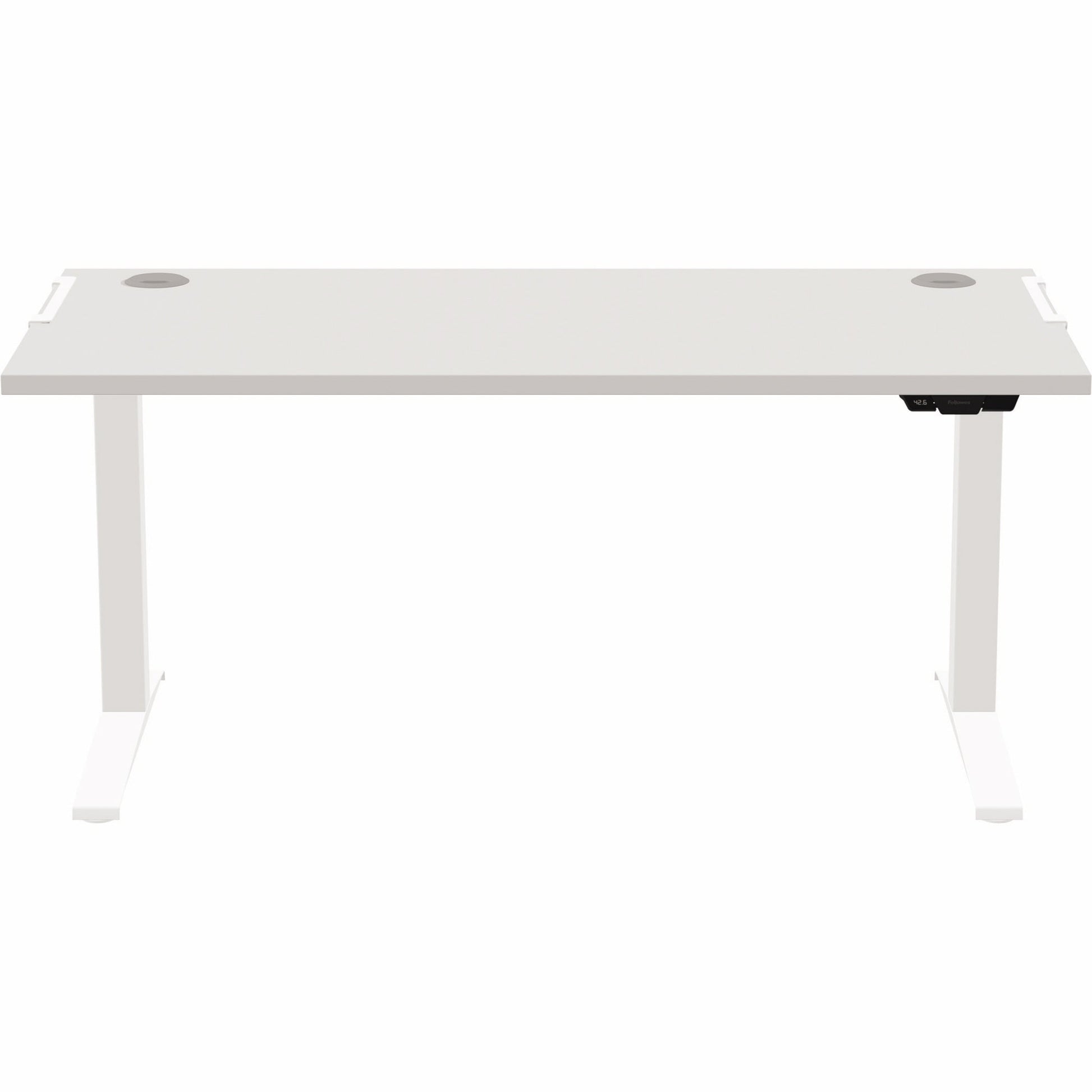Bezeichnung: Fellowes® Schreibtisch LevadoT Maße: 1.600 x 640-1.260 x 800 mm (B x H x T) Spanplatte grau