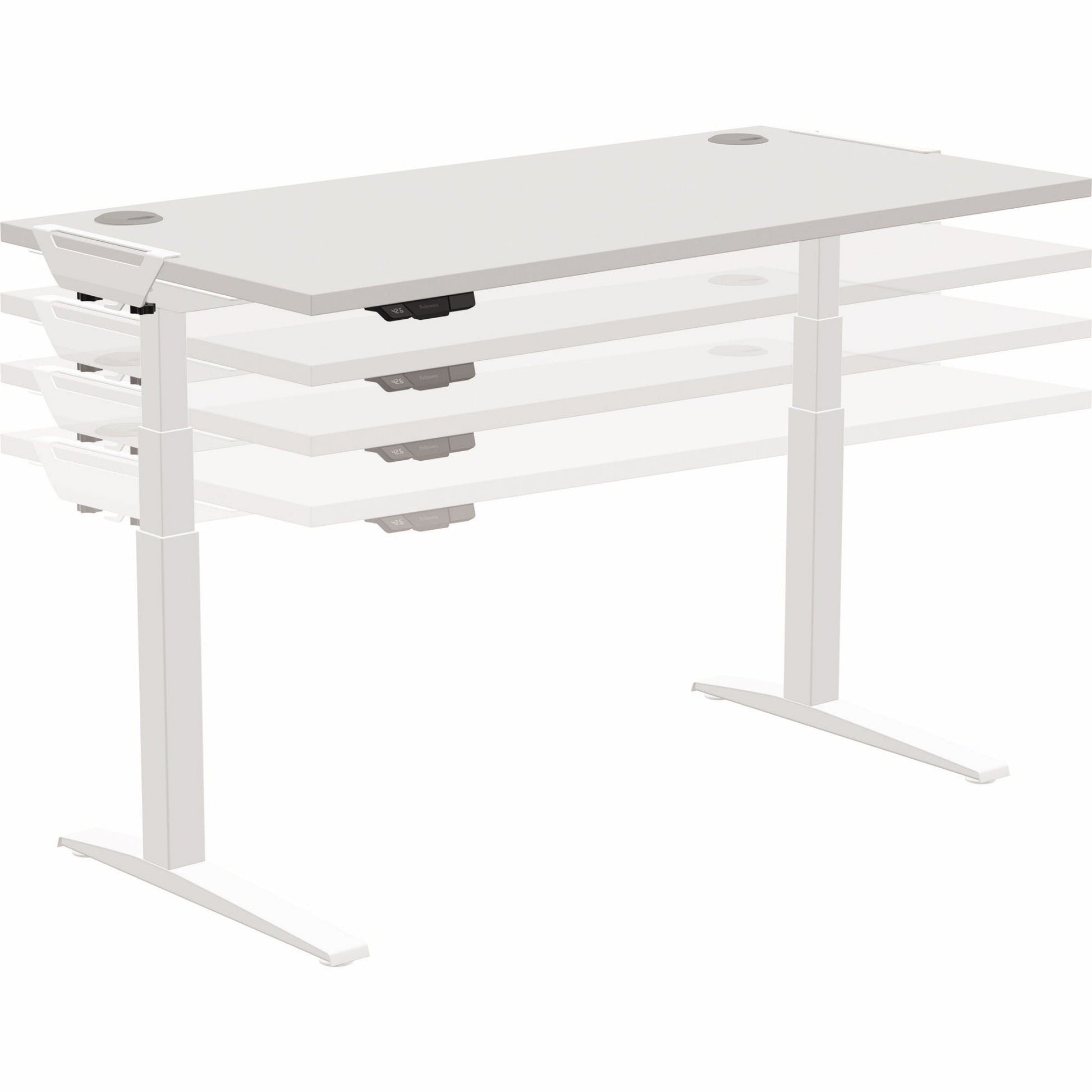 Bezeichnung: Fellowes® Schreibtisch LevadoT Maße: 1.400 x 640-1.260 x 800 mm (B x H x T) Spanplatte grau