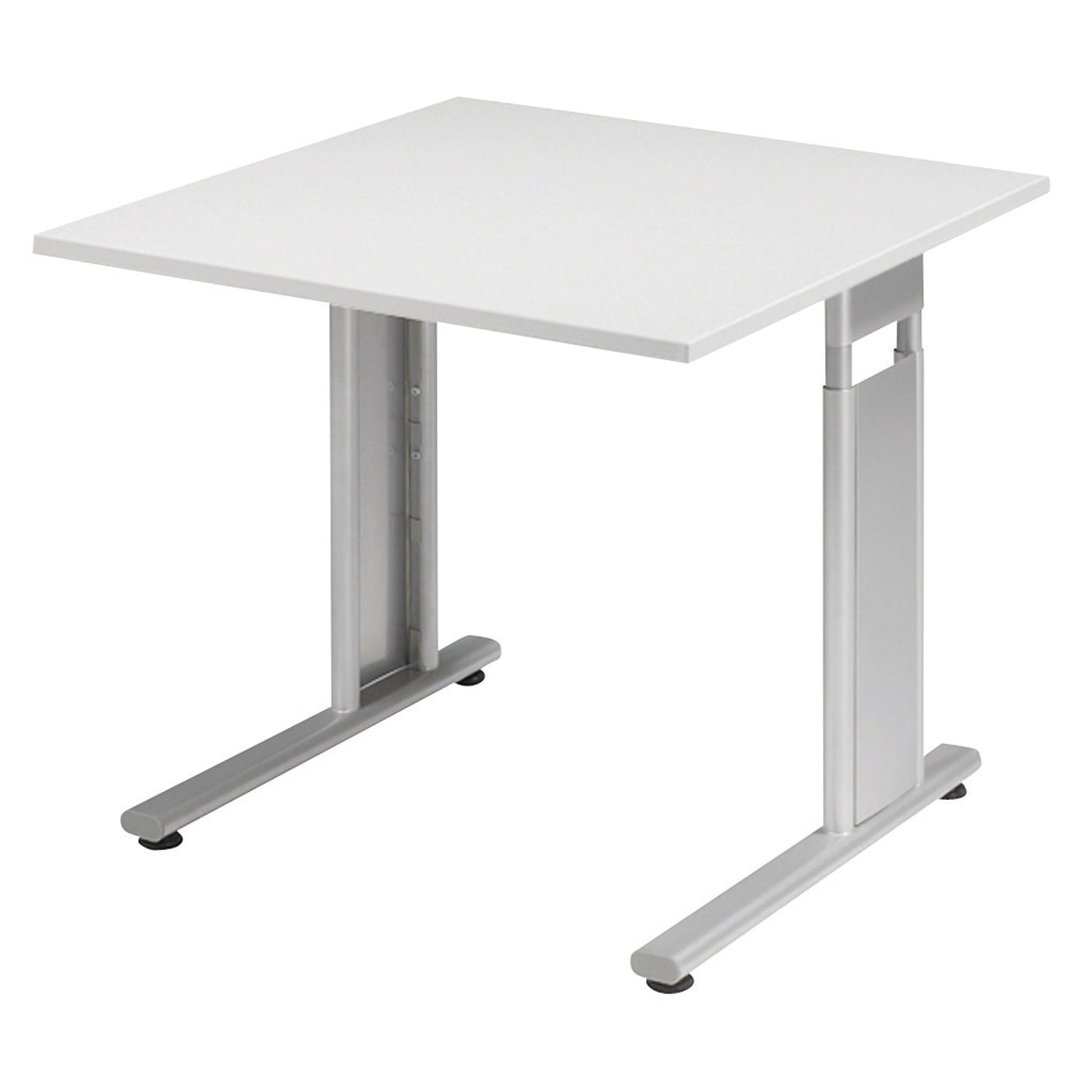 Bezeichnung: Geramöbel Schreibtisch C Fuß Flex Maße: 800 x 680-820 x 800 mm (B x H x T) Dreischicht-Feinspan lichtgrau