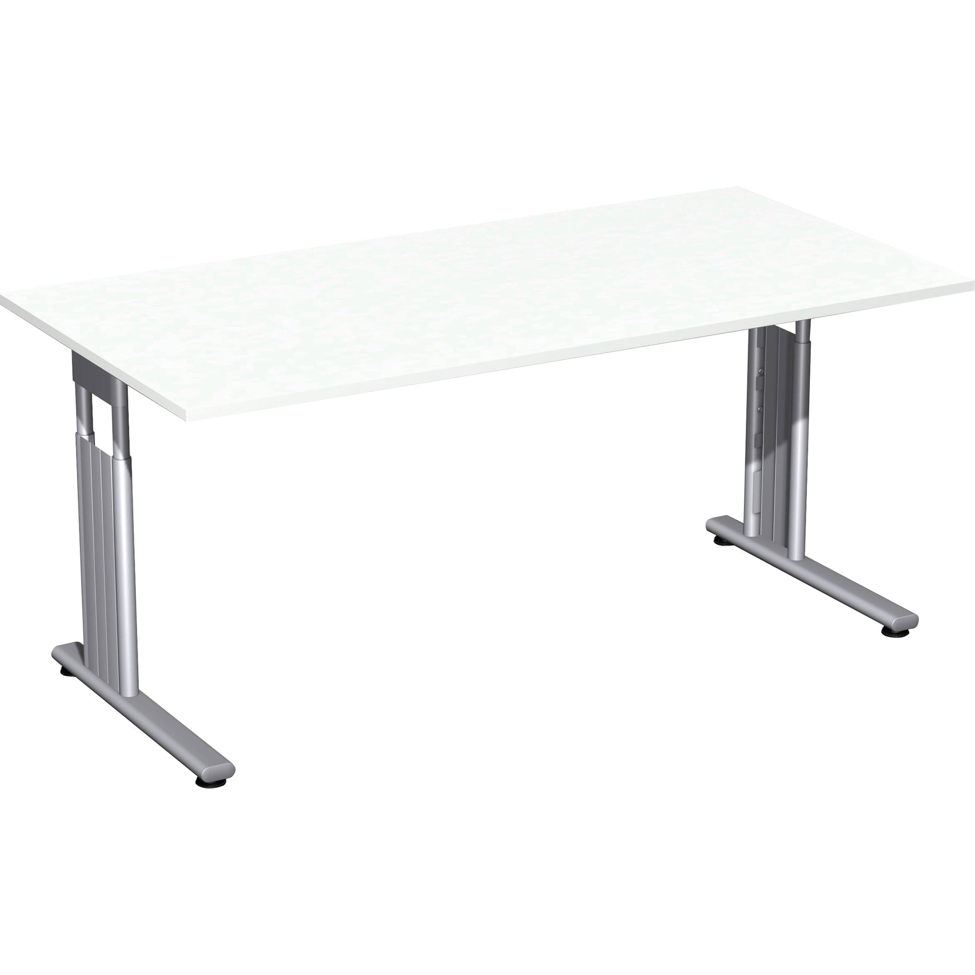 Bezeichnung: Geramöbel Schreibtisch C Fuß Flex Maße: 1.600 x 680-820 x 800 mm (B x H x T) Dreischicht-Feinspan weiß