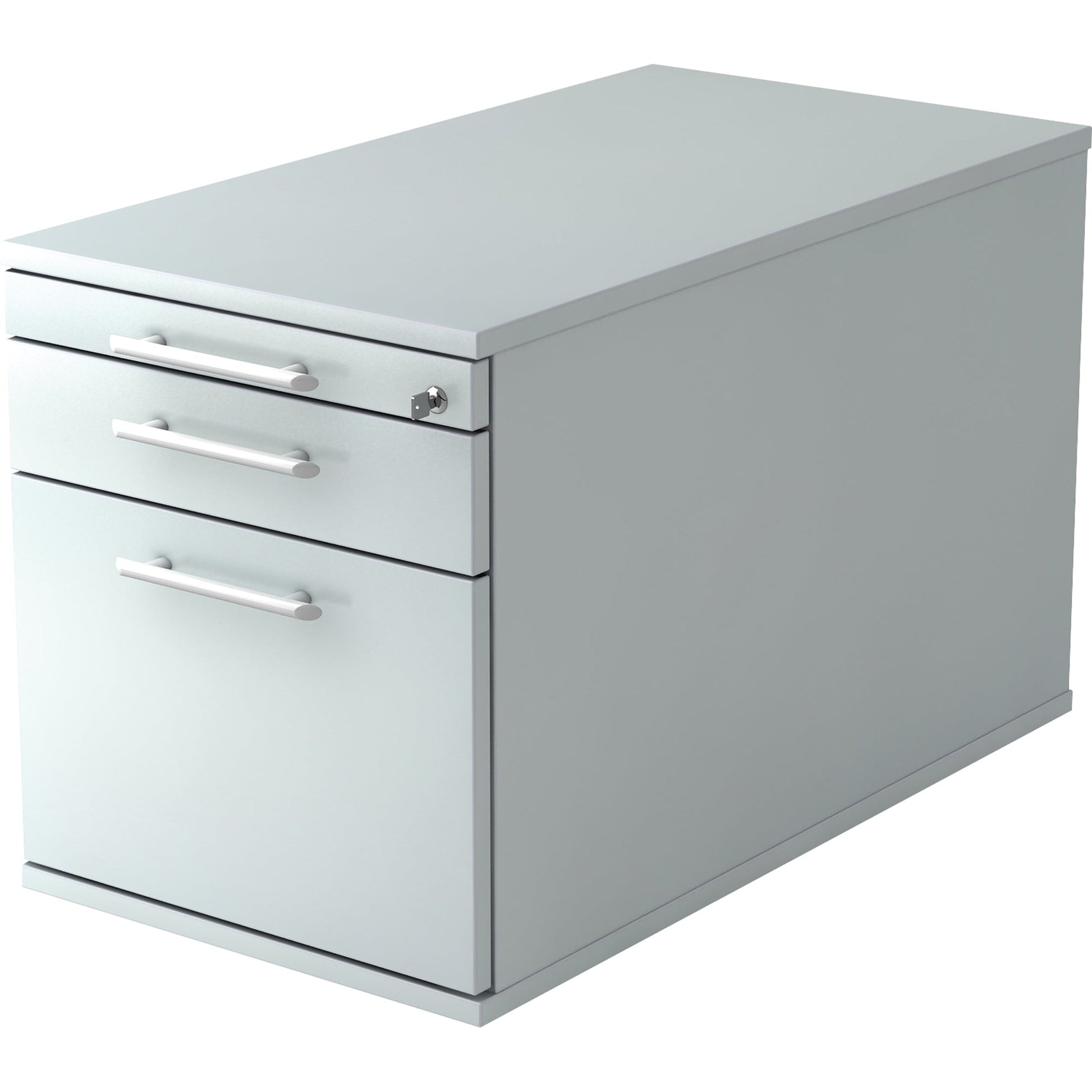 grauZentralverriegelung. Relinggriff. Teleskop-Metall-Kugelführungen. 75% Teilauszug Schub, 104% Vollauszug Hängeregistratur. Belastung Schub 25 kg, Hängeregistratur 45 kg. Frontstück der Hängeregistratur mit Blendenstütze. Container gleichschließend. Korpus verleimt, 2 mm Kunststoff -Kante gerundet. Stellfüße und Griff e müssen montiert werden.