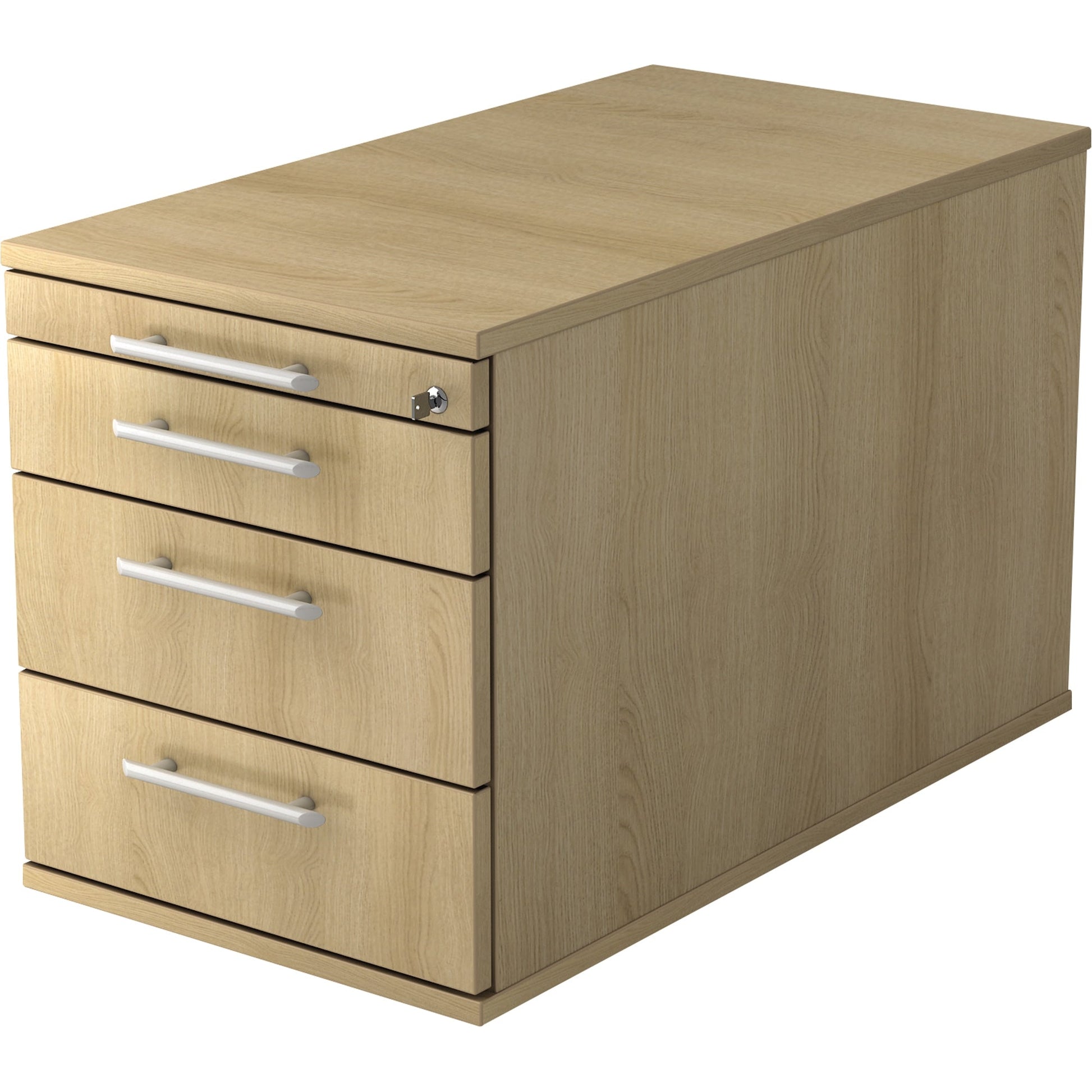 Bezeichnung: Hammerbacher Rollcontainer Solid 428 x 512 x 800 mm (B x H x T) 4 Schubladen Holz, melaminharzbeschichtet eiche