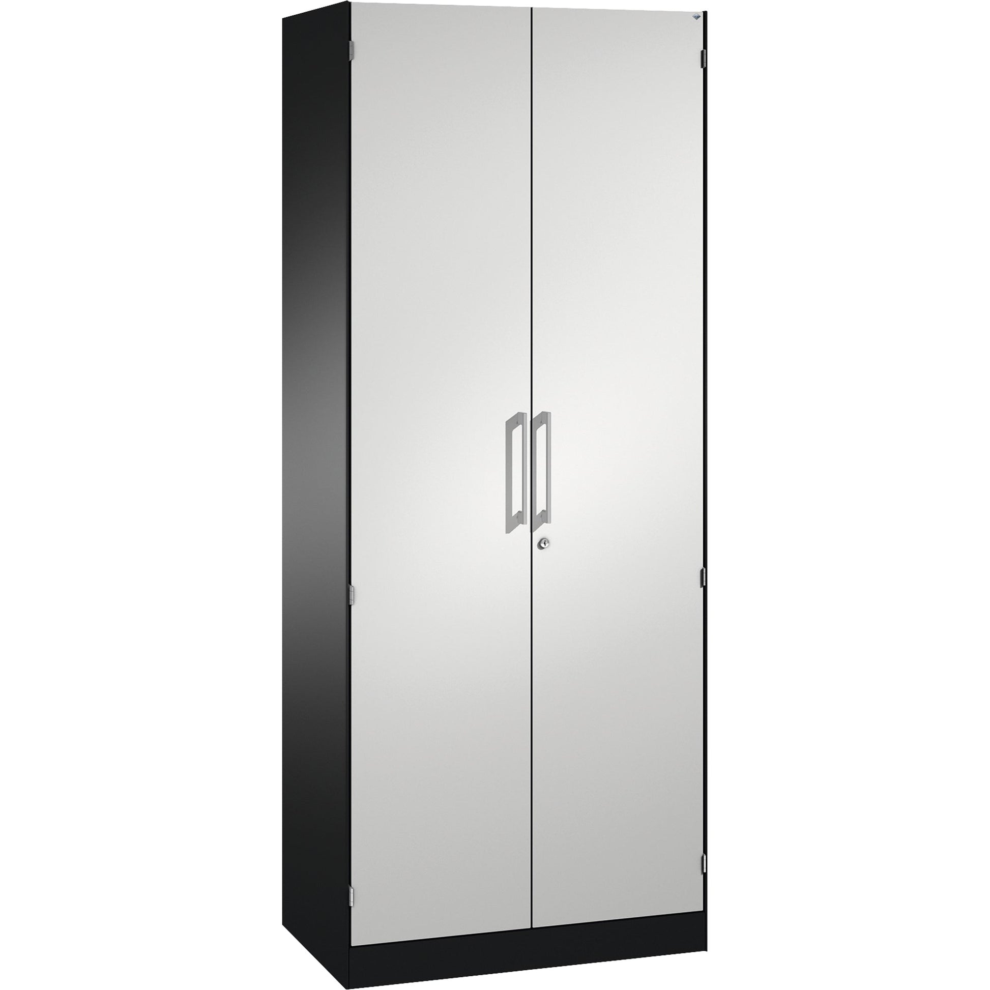 Bezeichnung: C+P Flügeltürenschrank Asisto 800 x 1.980 x 435 mm (B x H x T) 4 Fachböden Stahl Farbe der Front: lichtgrau Farbe des Korpus: schwarzgrau