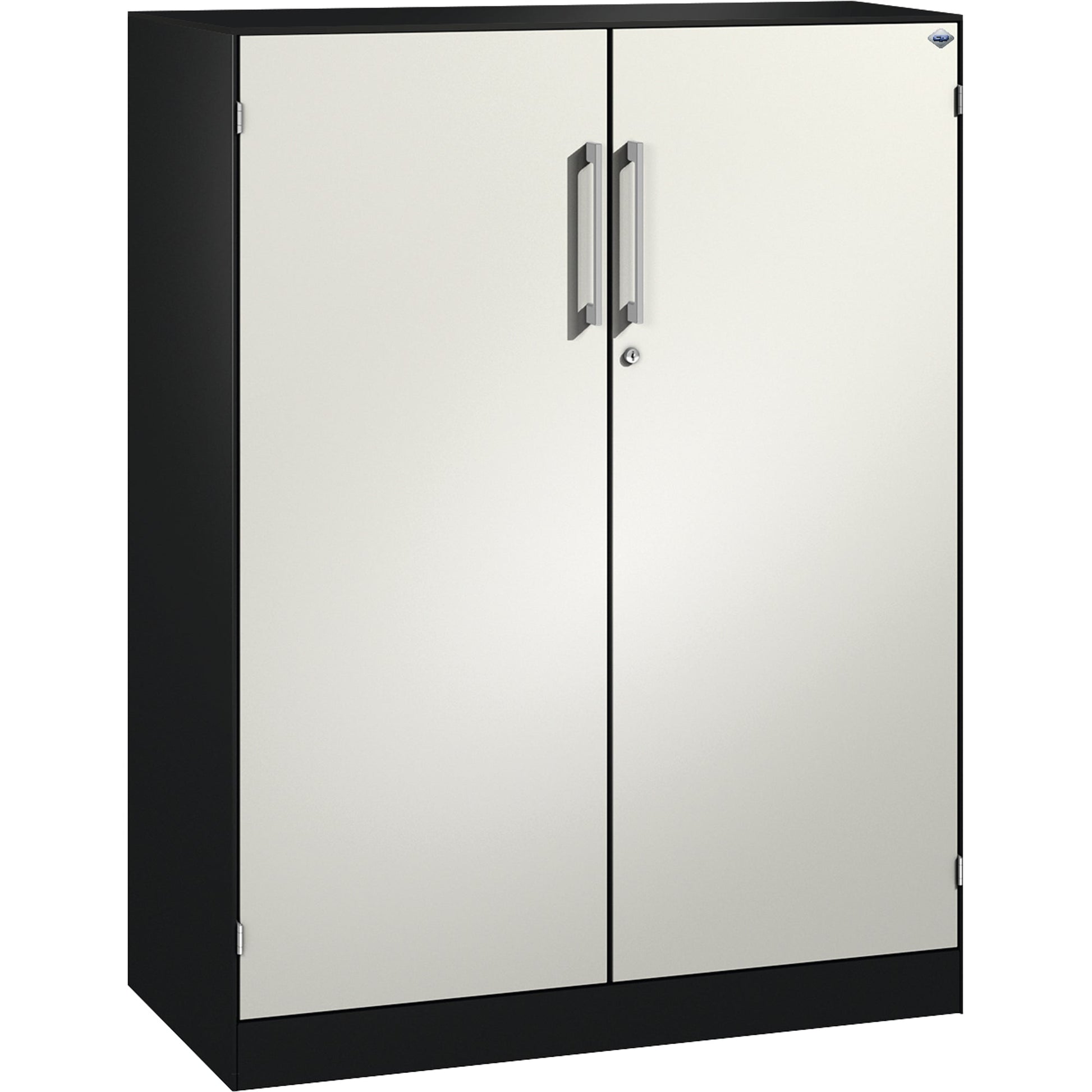 Bezeichnung: C+P Flügeltürenschrank Asisto 1.000 x 1.310 x 435 mm (B x H x T) 2 Fachböden Stahl Farbe der Front: verkehrsweiß Farbe des Korpus: schwarzgrau