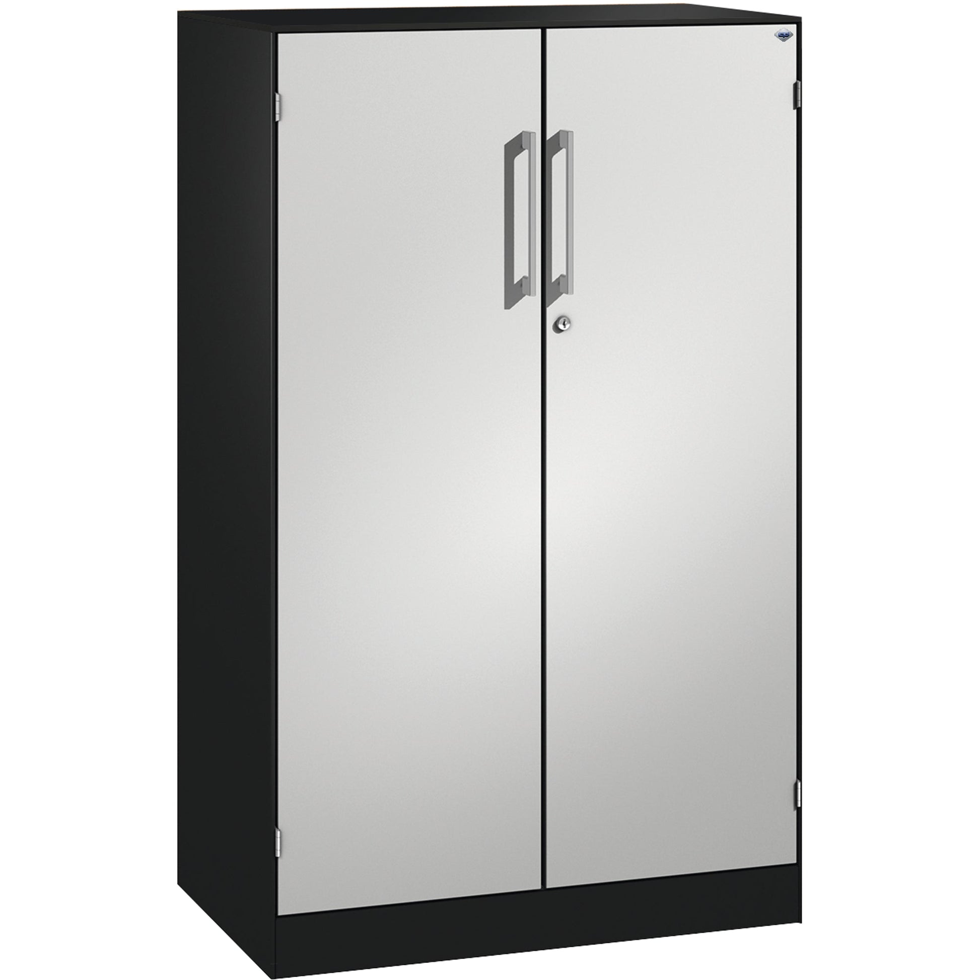 Bezeichnung: C+P Flügeltürenschrank Asisto 800 x 1.310 x 435 mm (B x H x T) 2 Fachböden Stahl Farbe der Front: lichtgrau Farbe des Korpus: schwarzgrau