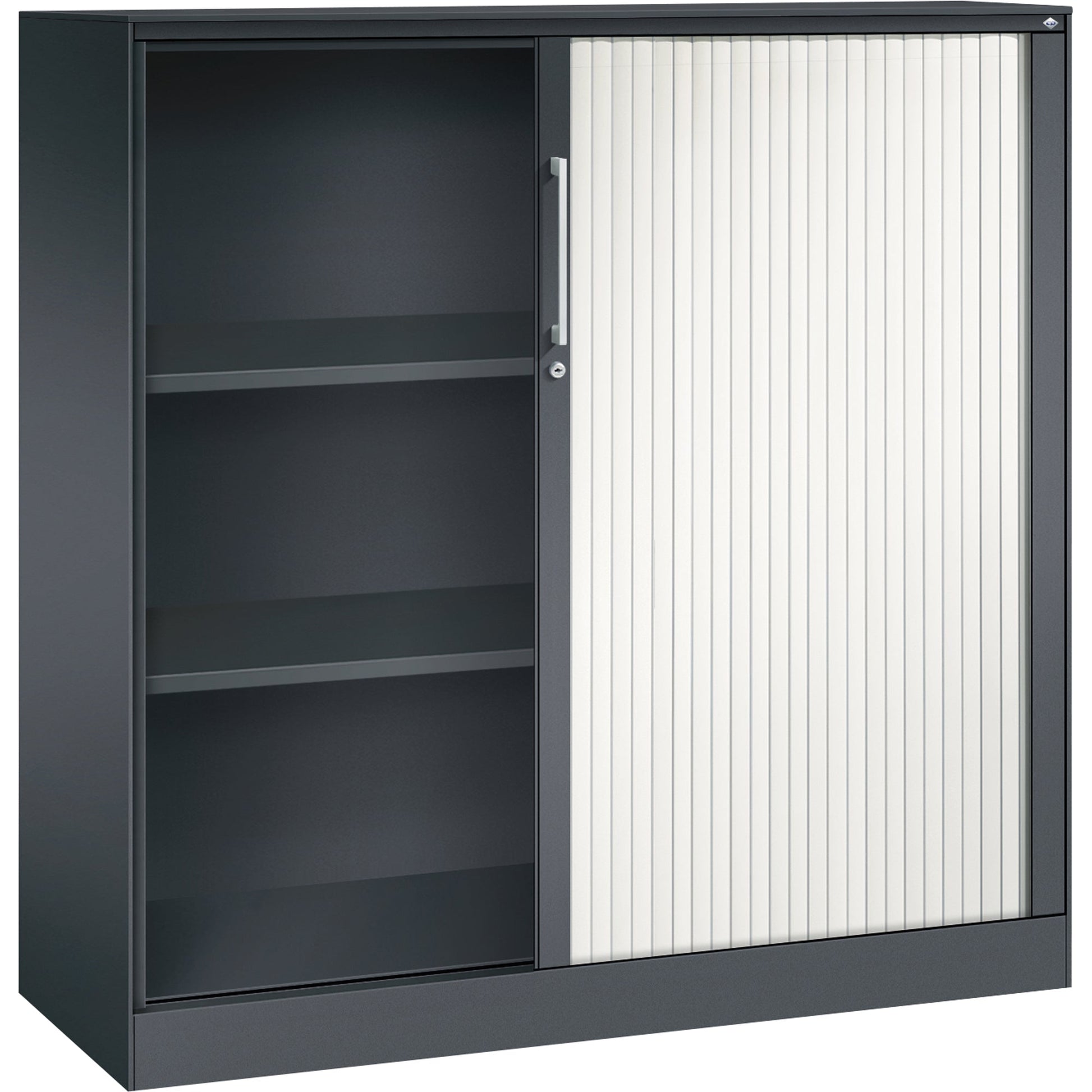Bezeichnung: C+P Rollladenschrank Asisto 1.200 x 1.310 x 435 mm (B x H x T) 2 Fachböden verkehrsweiß schwarzgrau