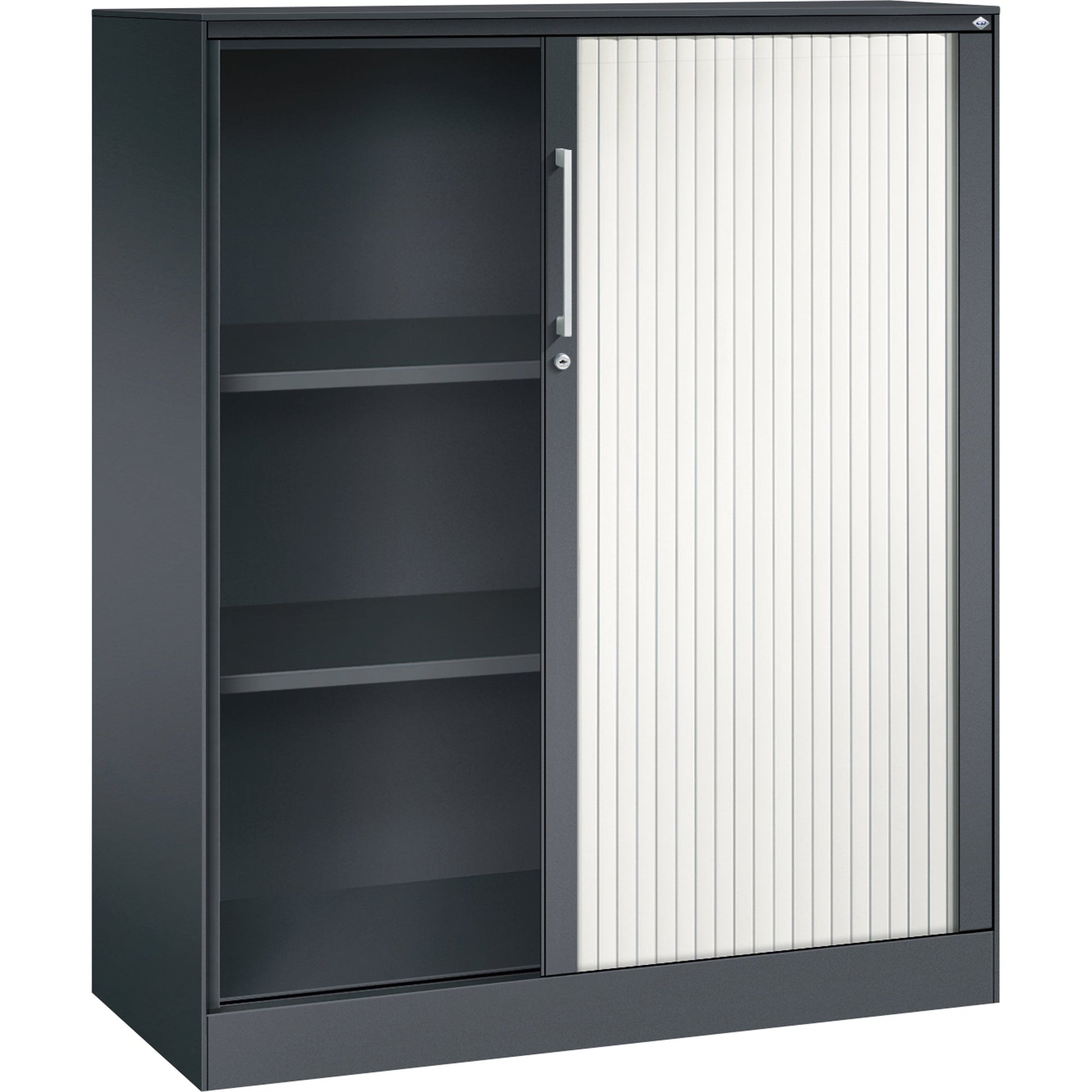 Bezeichnung: C+P Rollladenschrank Asisto 1.000 x 1.310 x 435 mm (B x H x T) 2 Fachböden verkehrsweiß schwarzgrau