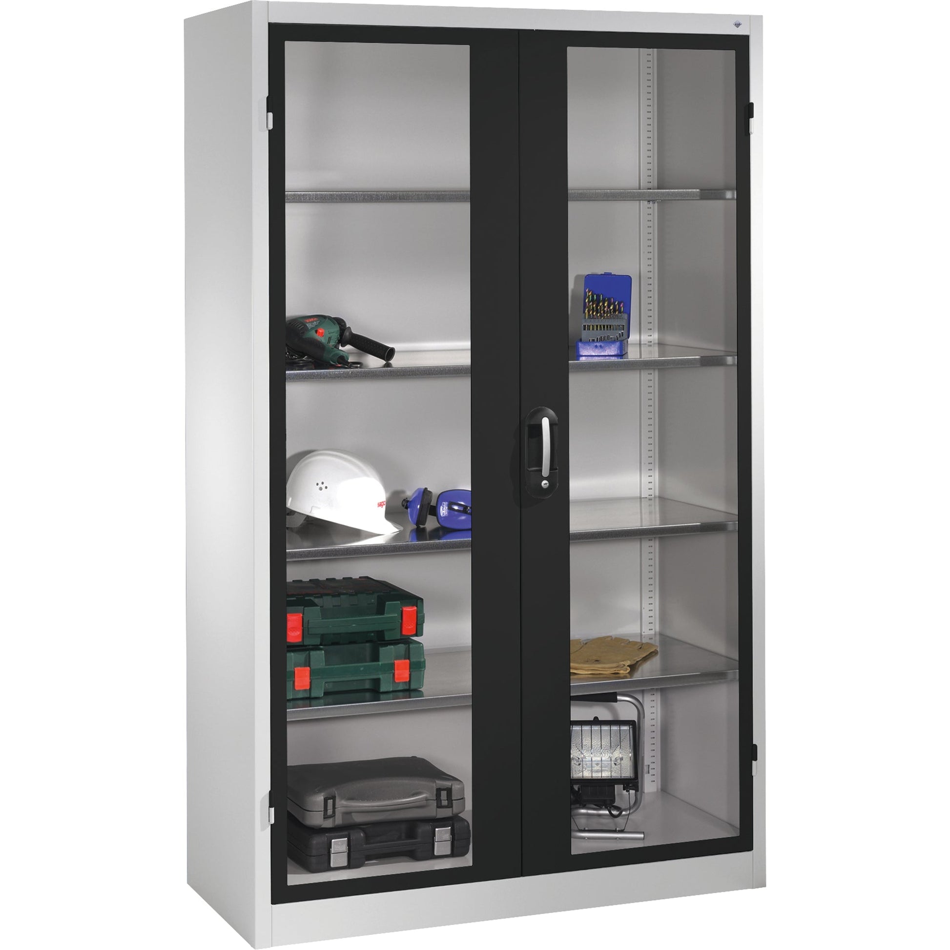 Bezeichnung: C+P Werkzeugschrank Serie 89 1.200 x 1.950 x 400 mm (B x H x T) Stahl, lackiert Farbe der Front: schwarzgrau Farbe des Korpus: lichtgrau