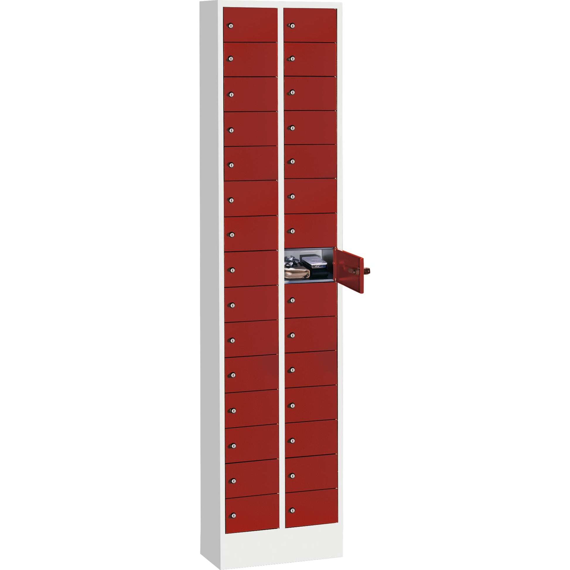Bezeichnung: C+P Schließfachschrank Intro 30 Fächer Stahl, lackiert Farbe der Front: rubinrot