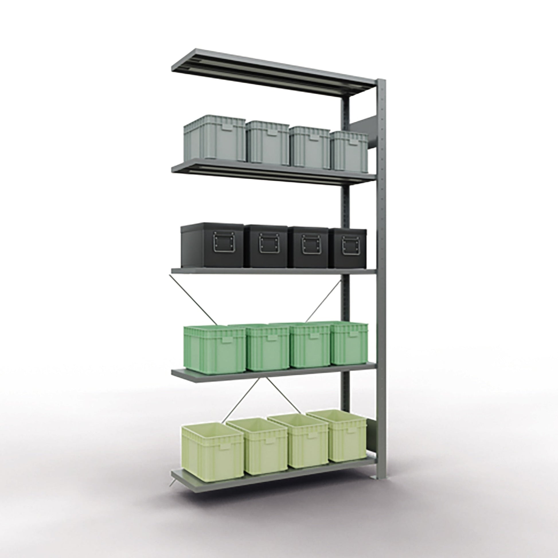 silberAussteifung durch Kreuzstrebe. Einfaches Ausrichten des Regals durch Spannschlösser an den Kreuzstreben.Ideal zum Aufbau von Regalzeilen vor Wänden und als Doppelregal Rücken an Rücken. Fachböden im Raster in der Höhe verstellbar. Geeignet zum Bau mehrstöckiger Regalanlagen. Schneller Aufbau durch einfaches Stecken der Fachböden.