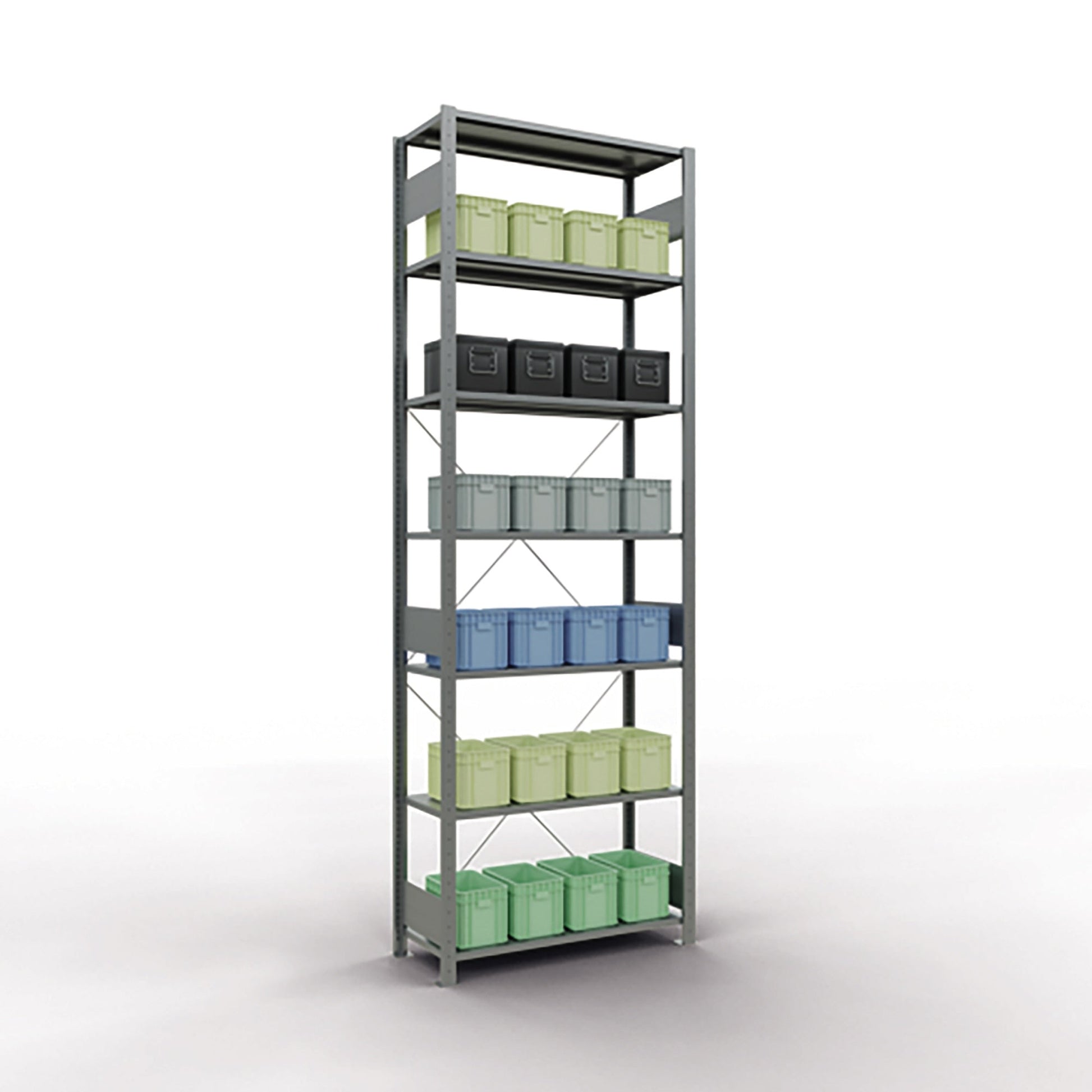 silberAussteifung durch Kreuzstrebe. Einfaches Ausrichten des Regals durch Spannschlösser an den Kreuzstreben.Ideal zum Aufbau von Regalzeilen vor Wänden und als Doppelregal Rücken an Rücken. Fachböden im Raster in der Höhe verstellbar. Geeignet zum Bau mehrstöckiger Regalanlagen. Schneller Aufbau durch ein faches Stecken der Fachböden.