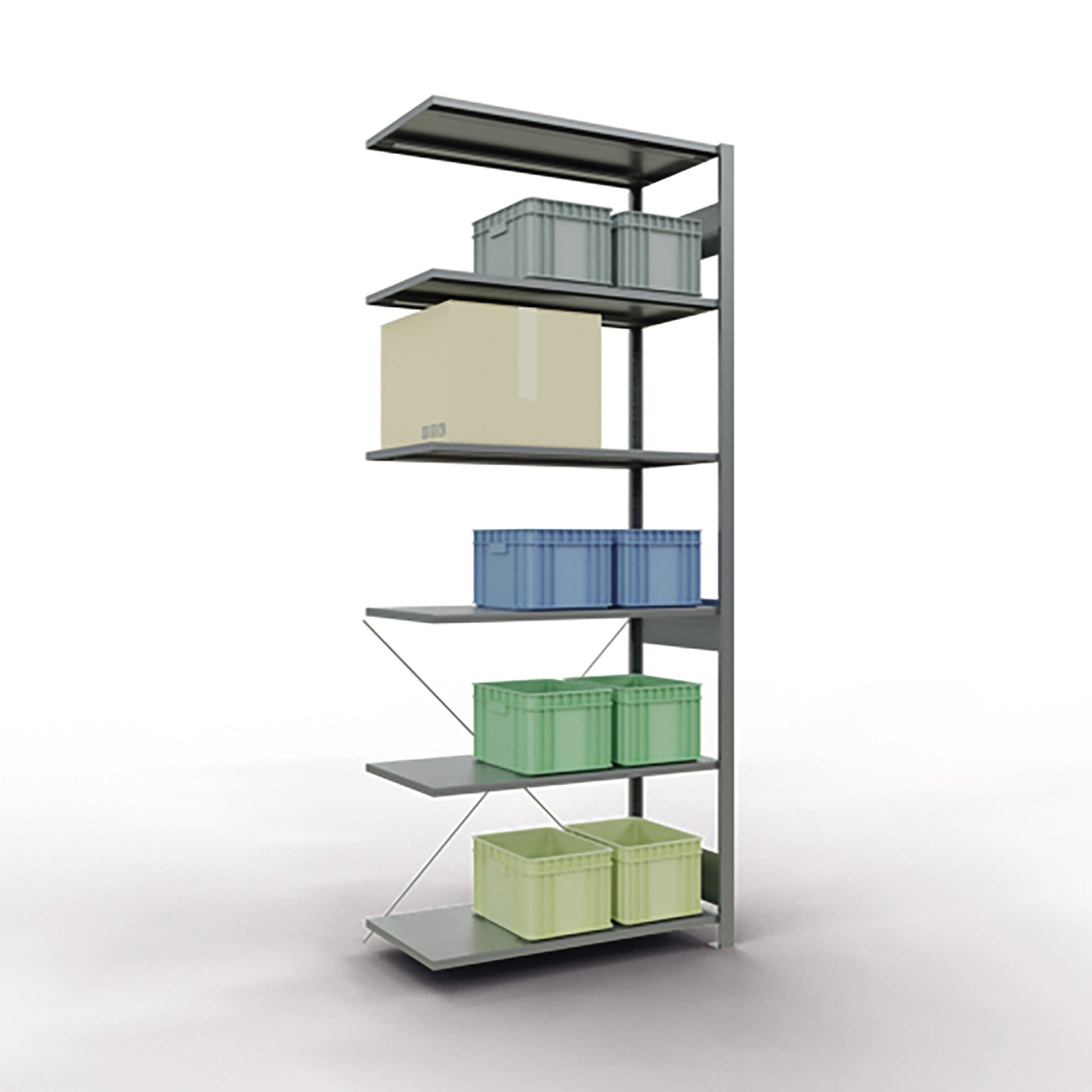 silberAussteifung durch Kreuzstrebe. Einfaches Ausrichten des Regals durch Spannschlösser an den Kreuzstreben.Ideal zum Aufbau von Regalzeilen vor Wänden und als Doppelregal Rücken an Rücken. Fachböden im Raster in der Höhe verstellbar. Geeignet zum Bau mehrstöckiger Regalanlagen. Schneller Aufbau durch einfaches Stecken der Fachböden.