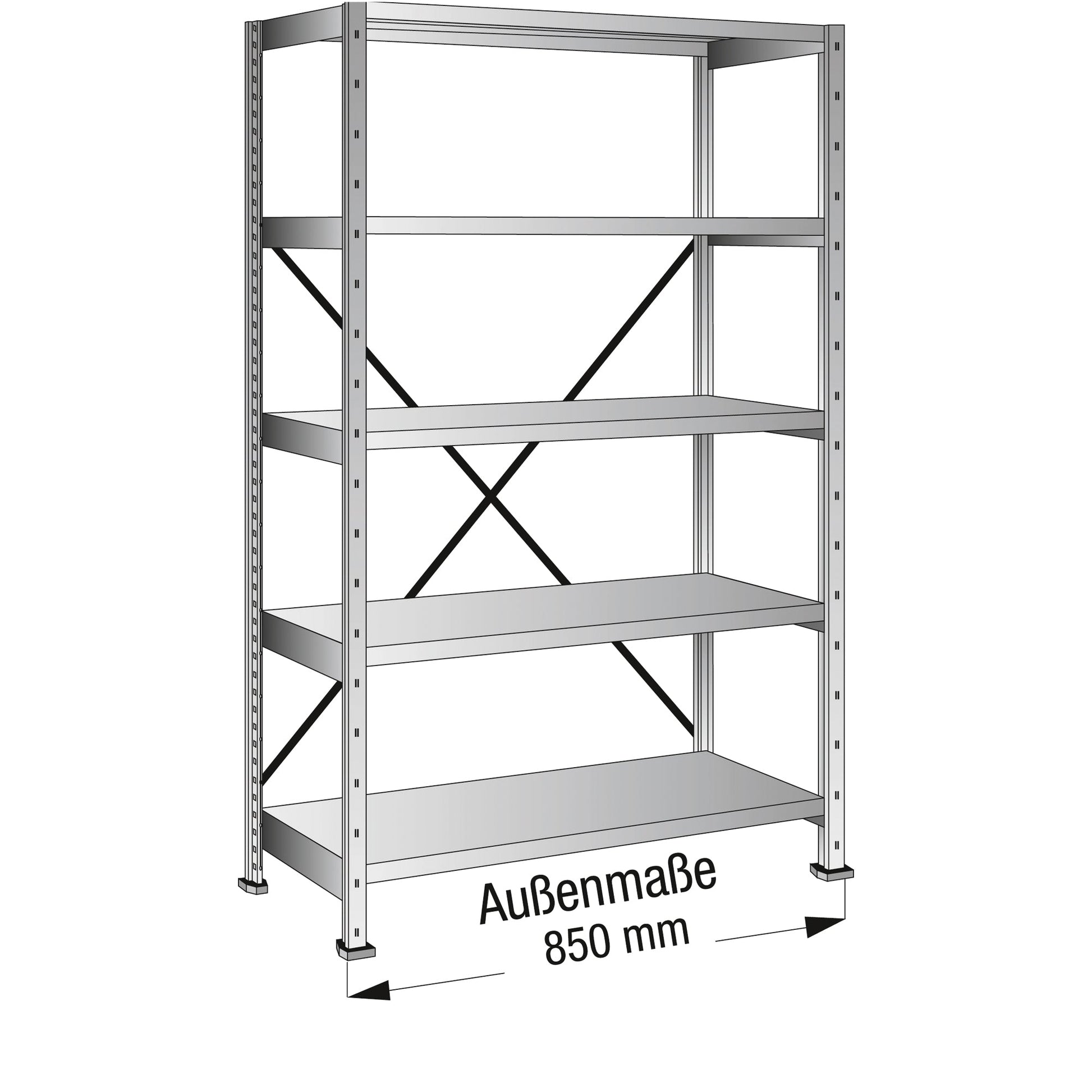 Bezeichnung: SCHOLZ Grundregal M80 800 x 1.920 x 400 mm ( B x H x T) 5 Fachböden 200kg inkl. Kreuzdiagonale Stahl
