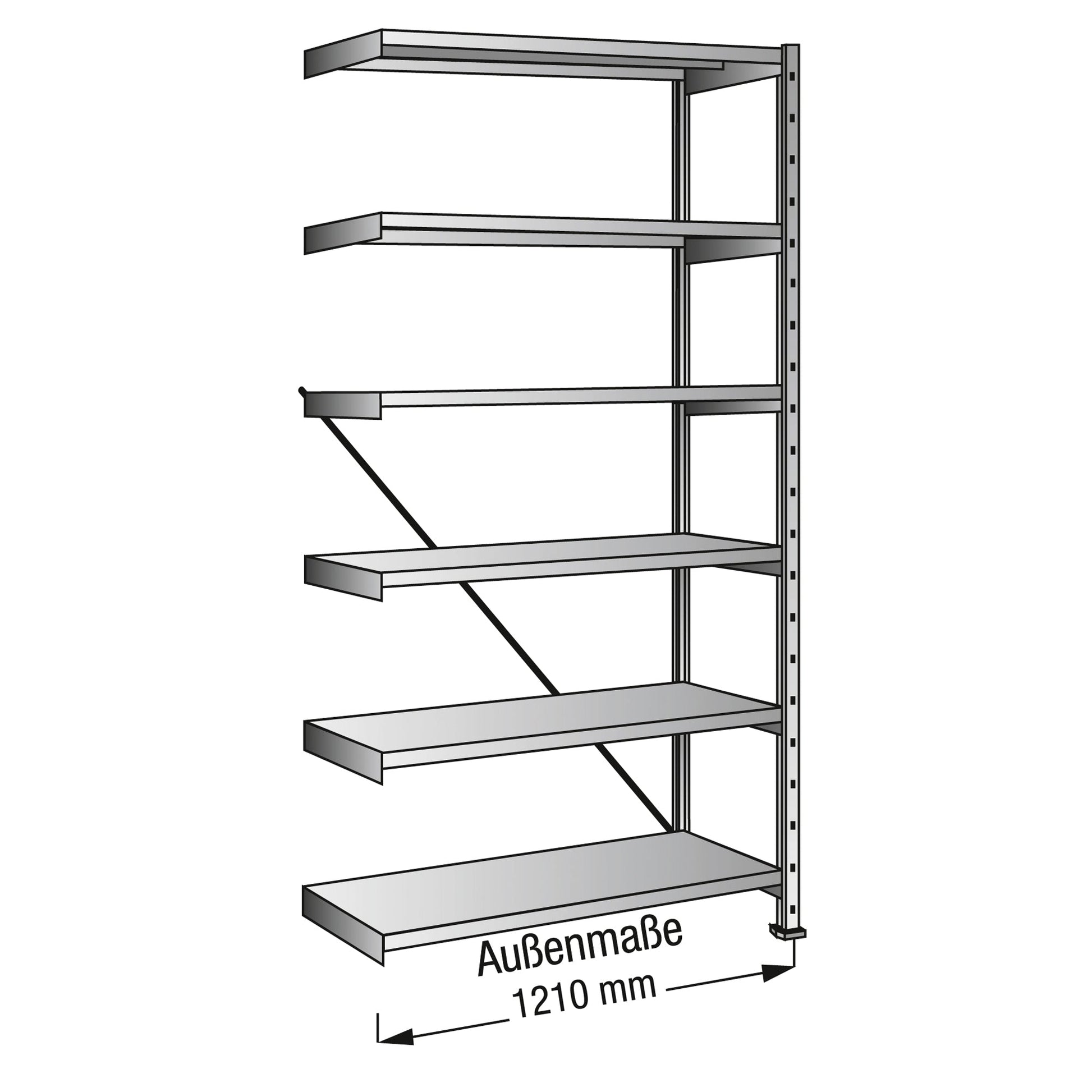 Bezeichnung: SCHOLZ Anbauregal M100 1.200 x 2.280 x 1.000 mm (B x H x T) 6 Fachböden 300kg Stahl