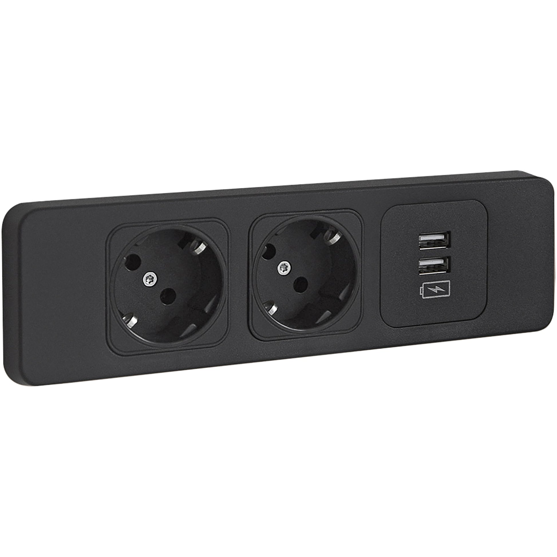 Bezeichnung: Einbau-Steckdosenleiste 2 Steckdosen 2 USB Ports