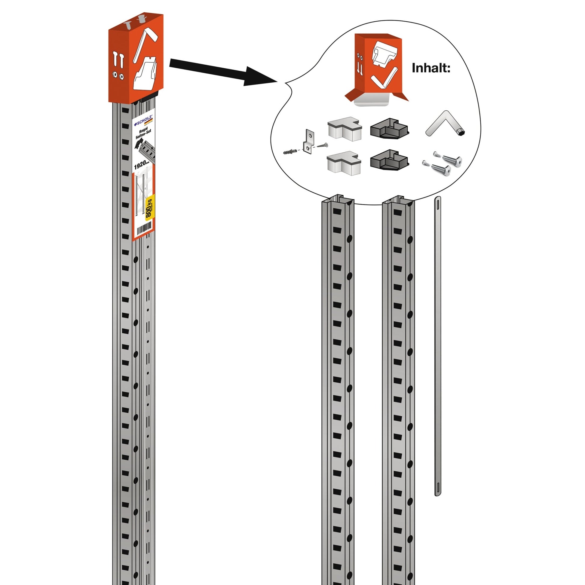 Bezeichnung: SCHOLZ Zubehör Regal/Schrank Pfosten SCHOLZ Grundregal/Anbauregal M80, M100 1.920mm Stahl, verzinkt