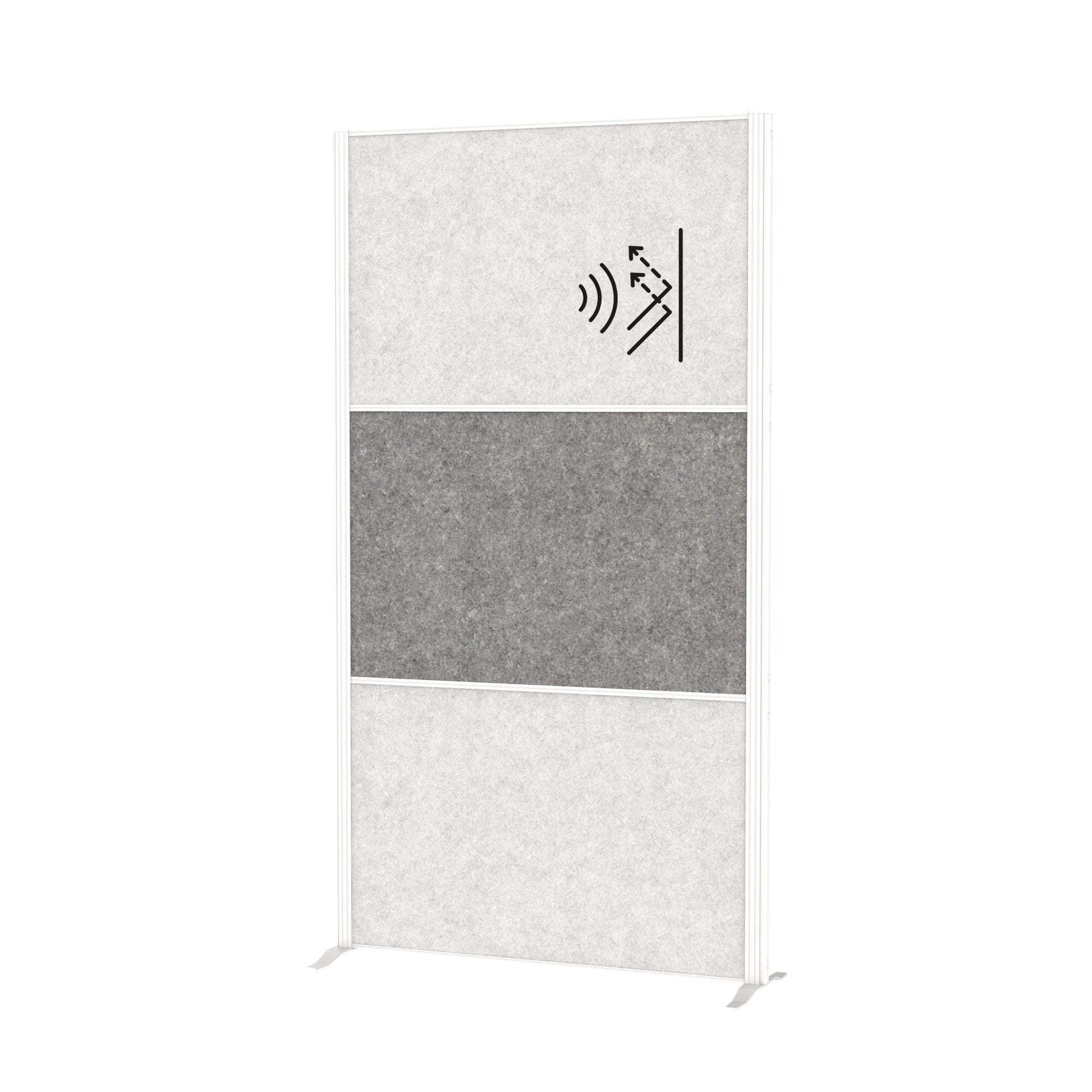 weißModulare, freistehende Trennwand/Akustikwand für moderne Raumkonzepte, das Raumteiler-System vereint Konzentration mit Kommunikation und ist individuell gestaltbar. Open Space Lösungen: Konzentrationszonen mit Lärmschutz und verbesserter Akustik, Privacy Spaces durch Sichtschutz, für Kreativmeetings oder als Infowand. Module gesteckt und durch Schrauben fixiert. Extrem flexibel: Lückenlose Klettverbindung. Räume umgestalten: Mehrere Stellwände aneinanderreihen, schnell aufbauen und jederzeit einfach werkzeuglos umstellen. Im Büro rund um den Schreibtisch, im Callcenter, Konferenzzimmer oder Besprechungsraum, für eine Raum in Raum-Lösung oder im Home Office. Edles Design: Moderne Kombination von Rahmenfarbe und Oberfläche, dezentes Profil mit abgerundeten Kanten und dekorativen Rillen. Bodentiefer, blickdichter Sichtschutz: Abstand Boden zu Tafel-Unterkante nur 2 cm. Hochwertig: Umlaufendes Rahmenprofil (Stärke 44 mm).