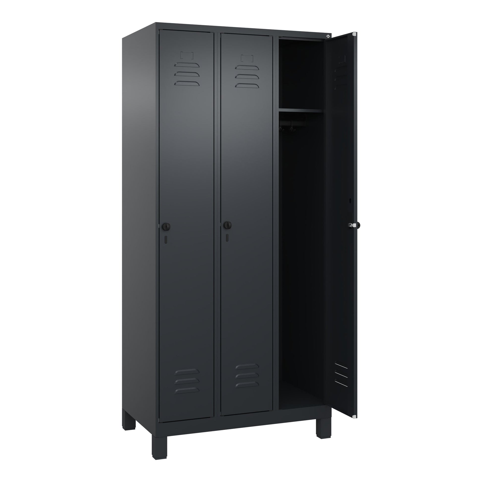 Bezeichnung: C+P Kleiderspind Classic PLUS 900 x 1.950 x 500 mm (B x H x T) 3 Abteile Stahl Farbe der Front: schwarzgrau Farbe des Korpus: schwarzgrau