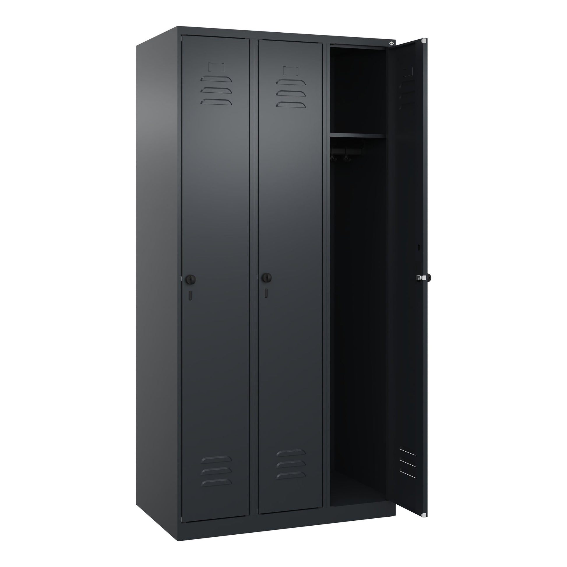 Bezeichnung: C+P Kleiderspind Classic PLUS 900 x 1.850 x 500 mm (B x H x T) 3 Abteile Stahl Farbe der Front: schwarzgrau Farbe des Korpus: schwarzgrau