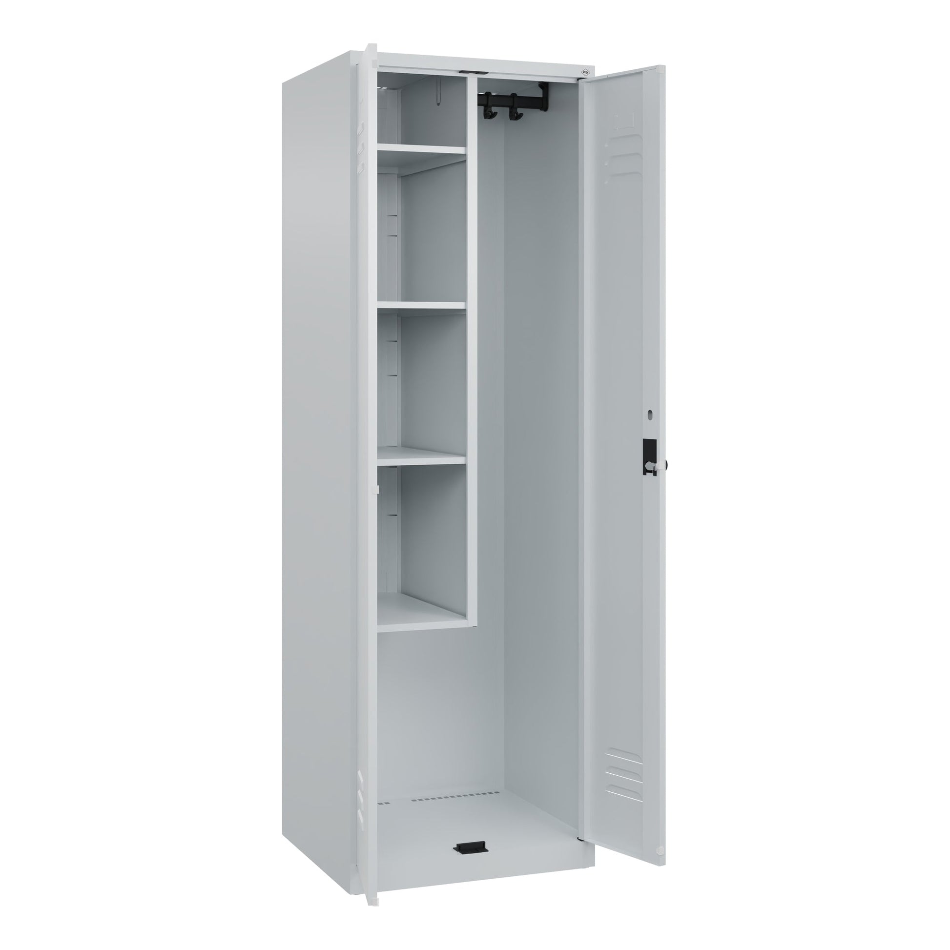 Bezeichnung: C+P Putzmittelschrank Classic PLUS 600 x 1.850 x 500 mm (B x H x T) Stahl Farbe der Front: lichtgrau Farbe des Korpus: lichtgrau