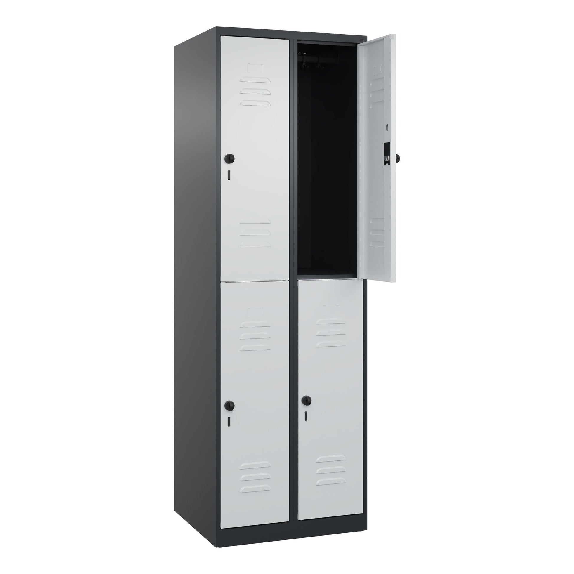 Bezeichnung: C+P Kleiderspind Classic PLUS 600 x 1.850 x 500 mm (B x H x T) 2 Abteile Stahl Farbe der Front: lichtgrau Farbe des Korpus: schwarzgrau