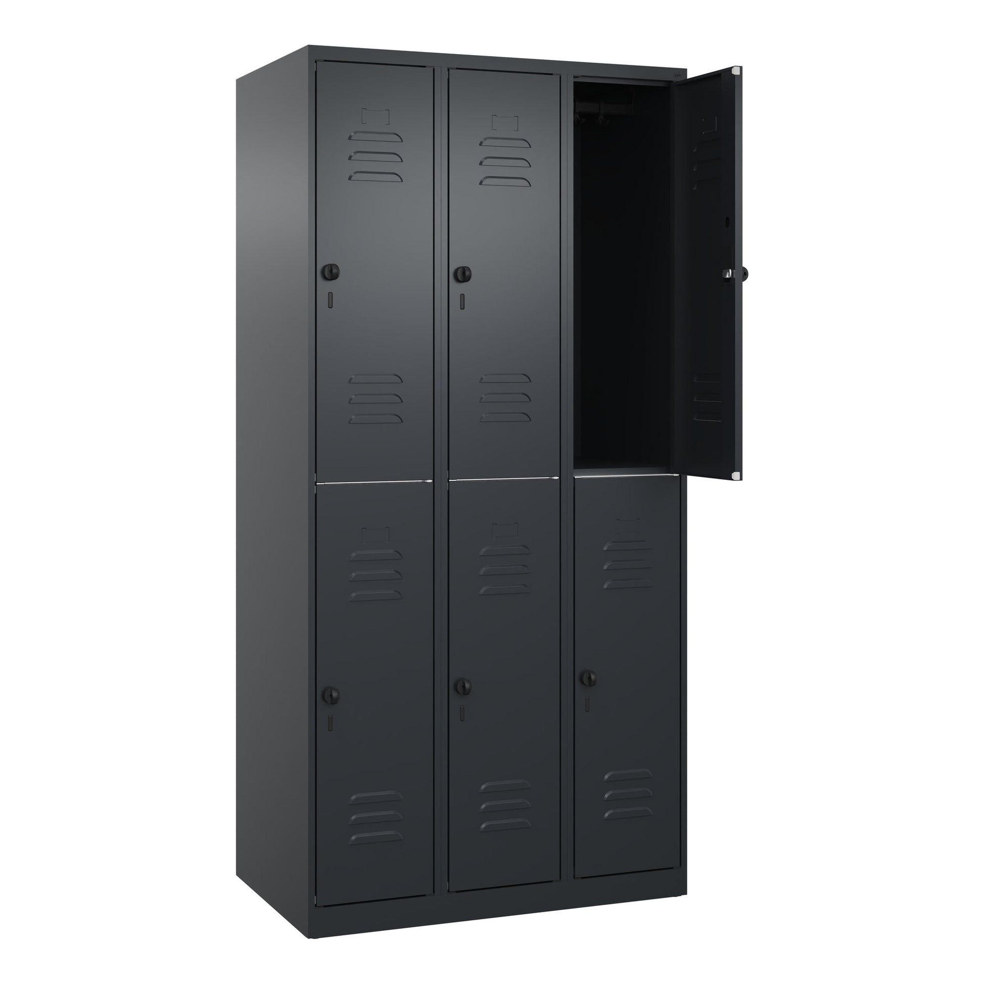 Bezeichnung: C+P Kleiderspind Classic PLUS 900 x 1.850 x 500 mm (B x H x T) 3 Abteile Stahl Farbe der Front: schwarzgrau Farbe des Korpus: schwarzgrau
