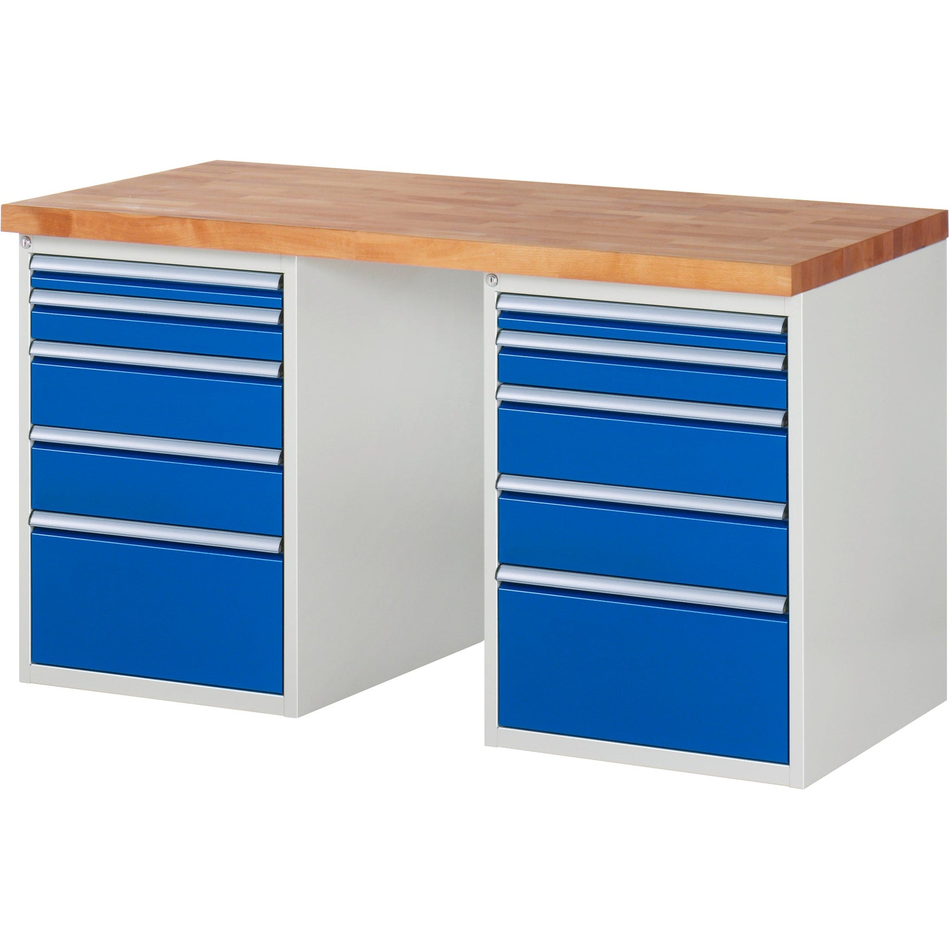 Bezeichnung: RAU Werkbank 7000 1.500 x 890 x 700 mm (B x H x T) enzianblau lichtgrau