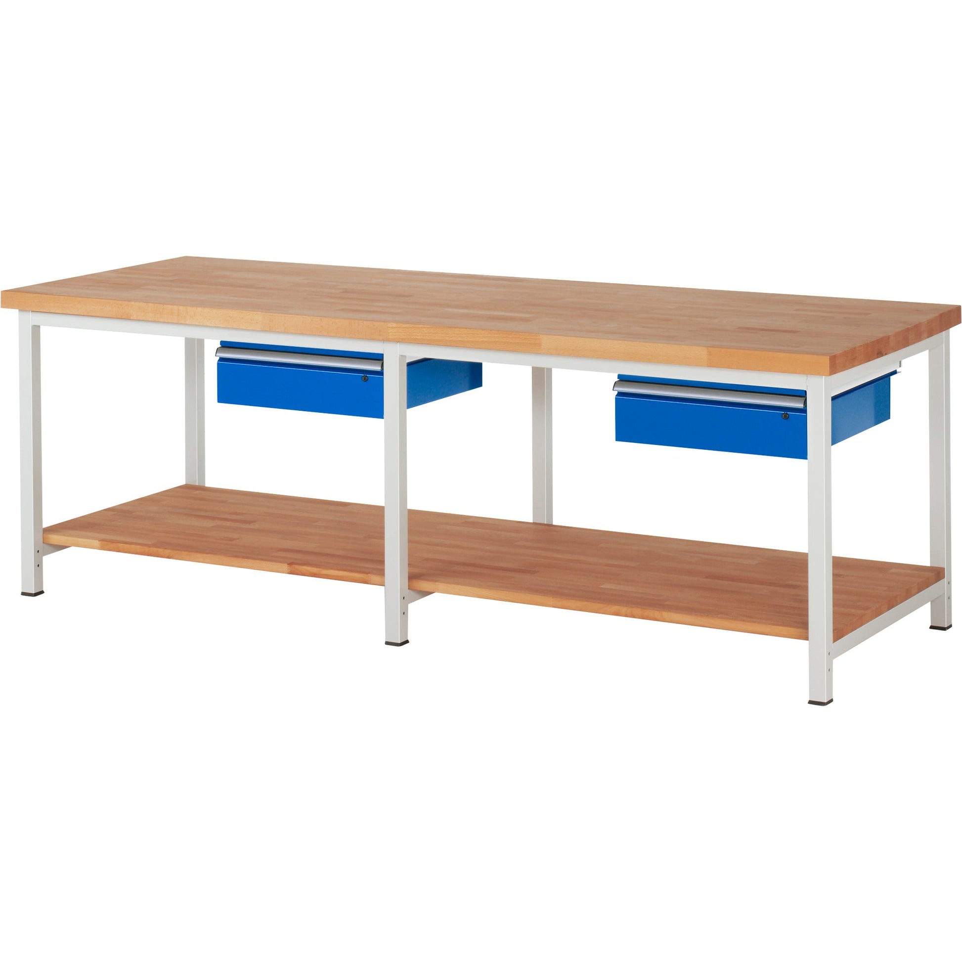 Bezeichnung: RAU Werkbank 8000 2.500 x 840-1.040 x 900 mm (B x H x T) enzianblau lichtgrau