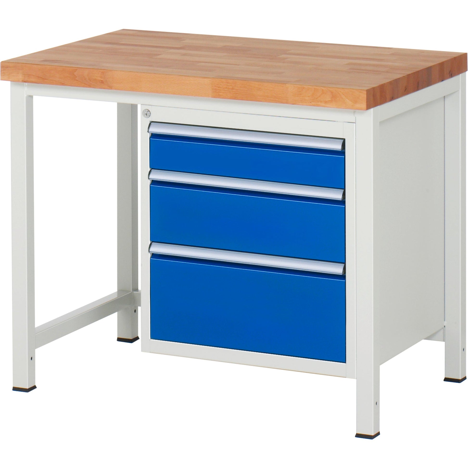 Bezeichnung: RAU Werkbank 8000 1.000 x 840-1.040 x 700 mm (B x H x T) enzianblau lichtgrau