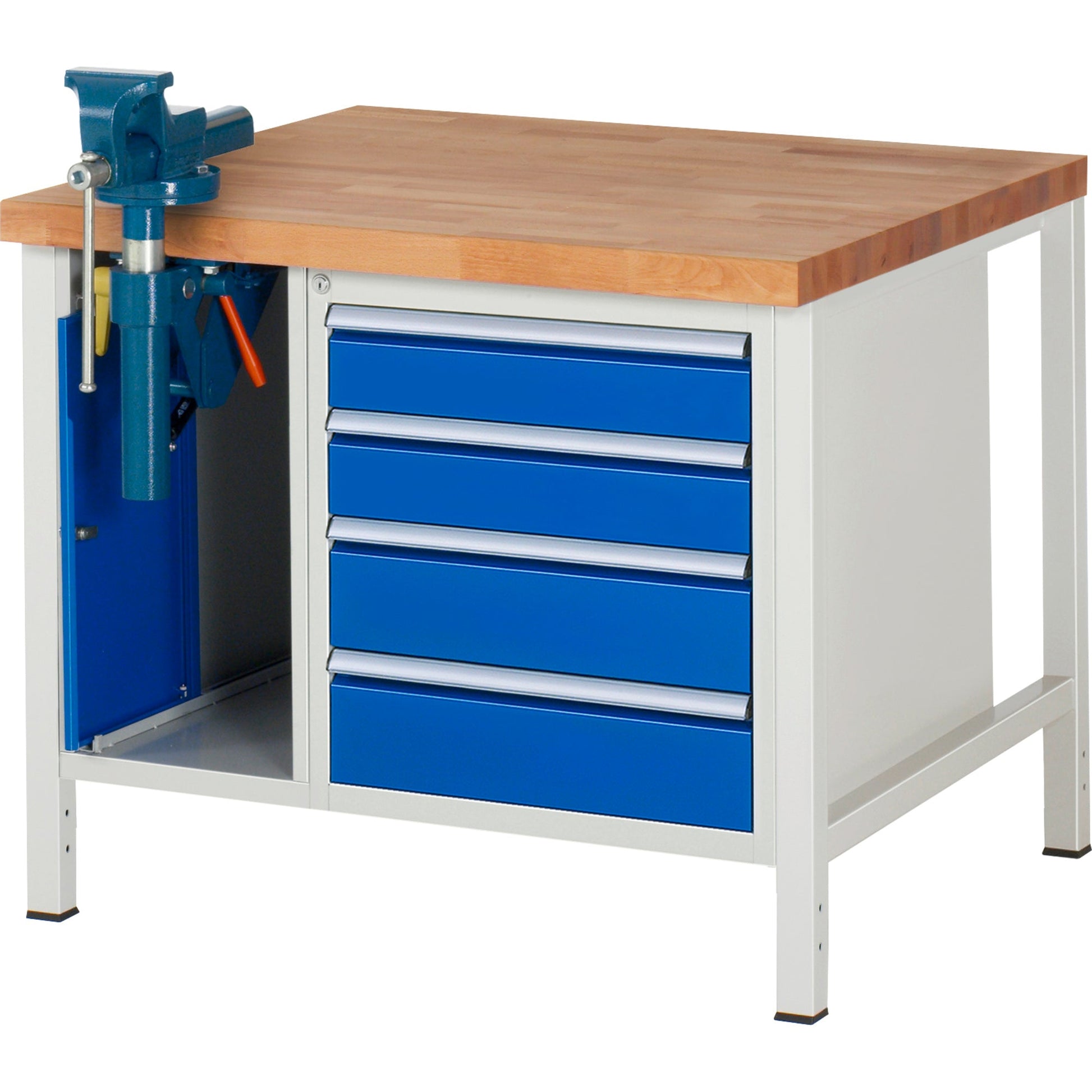 Bezeichnung: RAU Werkbank 8000 1.000 x 840-1.040 x 900 mm (B x H x T) enzianblau lichtgrau