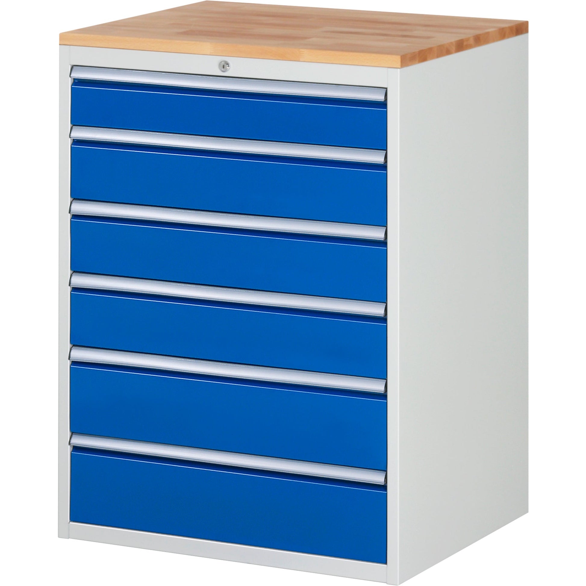 Bezeichnung: RAU Schubladenschrank 7000 770 x 1.035 x 650 mm (B x H x T) 6 Schubladen Farbe der Front: enzianblau Farbe des Korpus: lichtgrau