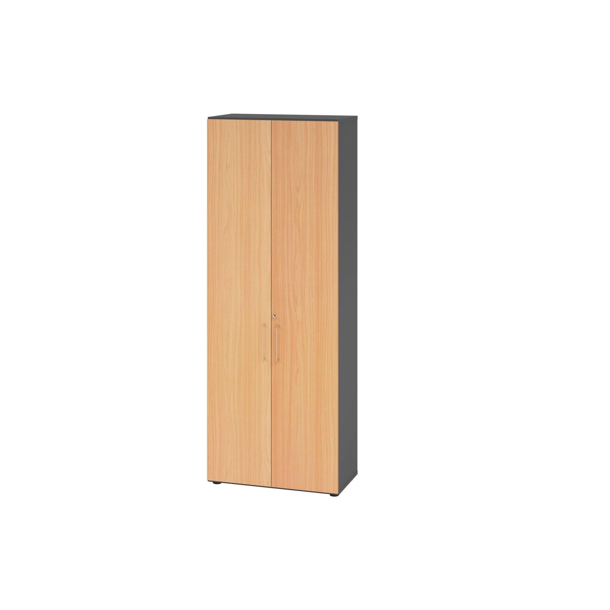 Bezeichnung: Hammerbacher Flügeltürenschrank V9 Advanced 800 x 2.156 x 417 mm (B x H x T) Spanplatten, folienummantelt Farbe der Front: buche Farbe des Korpus: graphit