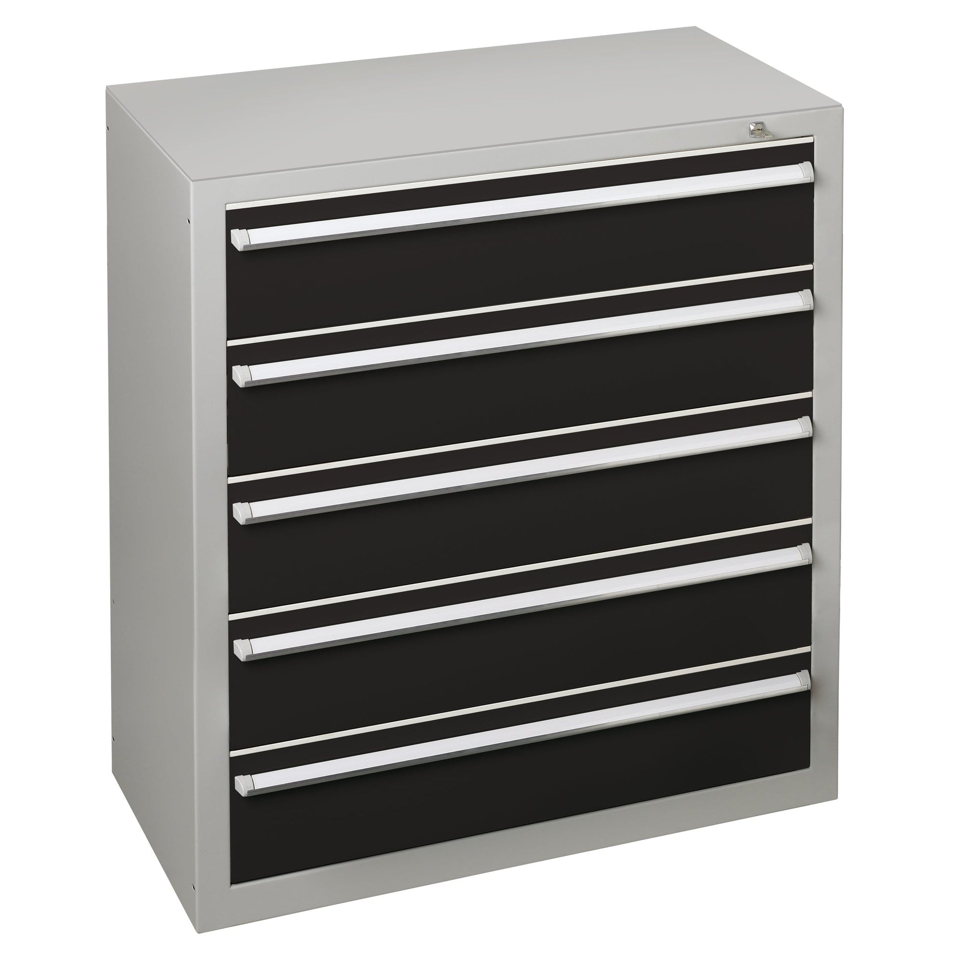 Bezeichnung: SCHULTE Schubladenschrank 1.000 x 1.100 x 500 mm (B x H x T) 5 Schubladen Stahl Farbe der Front: schwarz Farbe des Korpus: lichtgrau