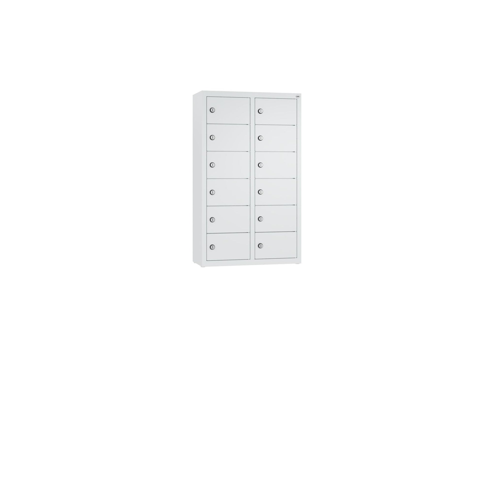Bezeichnung: C+P Wandschließfach Intro 460 x 770 x 200 mm (B x H x T) 12 Fächer Zylinderschloss 19,46kg Stahl, lackiert lichtgrau