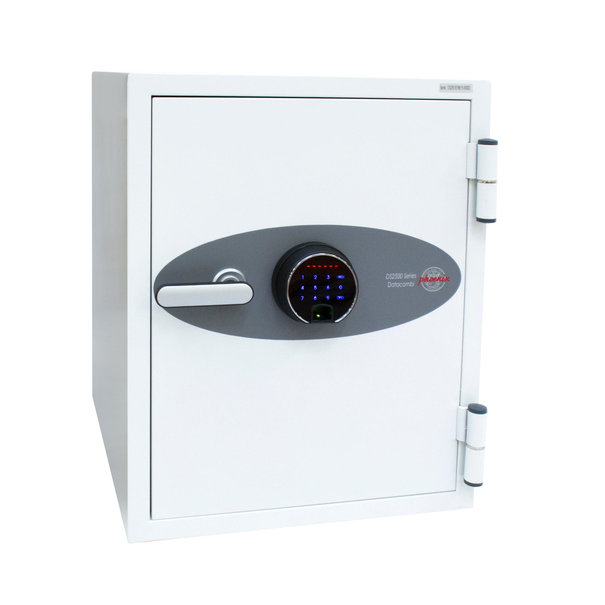 weißDER PHOENIX DATA COMBI bietet Feuerschutz für Papierdokumente, Computerdisketten, Bänder und alle Formen der Datenspeicherung sowie Sicherheit für Bargeld und Wertsachen in einem Gerät. Geeignet für den Einsatz in Wohn- oder Geschäftsräumen. FEUERSCHUTZ (PAPIER) - Getestet nach dem schwedischen NT Fire 017 - 90 Paper, bietet 90 Minuten Feuerschutz für Papierdokumente. FEUERSCHUTZ (DATEN) - Getestet nach dem schwedischen NT Fire 017 - 90dis, bietet 90 Minuten Feuerschutz für Computerdisketten, Bänder und alle Formen der Datenspeicherung. BRANDSCHUTZ (DIGITALE MEDIEN) - Getestet nach MTC - DIP120 - 60DM Brandteststandard, bietet 60 Minuten Brandschutz für digitale Medien, DVDs, USB-Speichersticks und Festplatten. SICHERHEITSSCHUTZ - Empfohlen für ein Übernacht-Bargeldrisiko von 2.500,00 € oder 25.000,00 € Wertsachen. FALLTEST - Feuer- und Schlagtest aus 9,1 Metern auf Widerstandsfähigkeit gegen den Aufprall durch die brennenden Böden eines Gebäudes. VERRIEGELUNG - Ausgestattet mit einer fortschrittlichen Hochsicherheits-Touchscreen-Tastatur und Fingerabdrucksperre mit klarer LED-Anzeige, internem Alarm, Dual-Control, verstecktem Code und verschlüsseltem Code, der standardmäßig mit bis zu 128 Fingerabdrücken programmiert werden kann. AUSSTATTUNG - Jeder Safe wird komplett mit einer abschließbaren Schublade und internen Schlüsselhaken geliefert. BEFESTIGUNG - Fertig vorbereitet für die Bodenbefestigung. BESONDERE EIGENSCHAFTEN - Ausgestattet mit automatischer Türverriegelung. FARBE - Beschichtet in einer hochwertigen, kratzfesten Farbe.