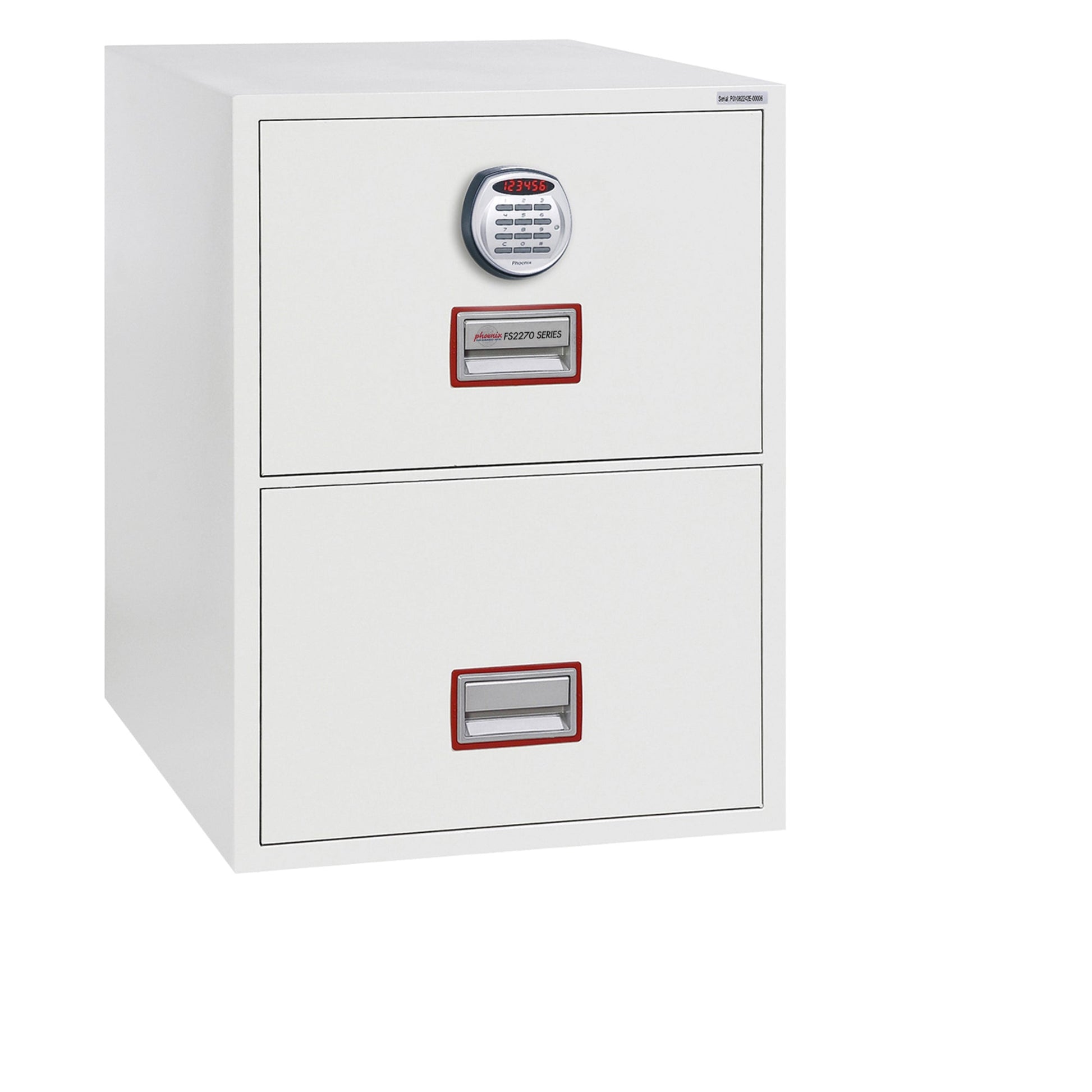 weißDer Phoenix World Class Vertical Fire File bietet konkurrenzlosen Schutz für Dokumente und Daten in einem eleganten, modernen Aktenschrankformat. Durch ultraleichte Isoliermaterialien kann der Schrank auf den meisten Standardböden ohne Unterstützung verwendet werden. BRANDSCHUTZ (PAPIER) - 120 Minuten Brandschutz für Papierdokumente. BRANDSCHUTZ (DIGITALE MEDIEN) - Getestet nach MTC - DIP120 - 60DM Brandteststandard, bietet 60 Minuten Brandschutz für digitale Medien, USB-Speichersticks und Festplatten. WASSERBESTÄNDIGKEIT - Wasserfeste Dichtungen verhindern Wasserschäden am Inhalt, wenn der Schrank Sprinkleranlagen oder Feuerwehrschläuchen ausgesetzt ist. FALLTEST - Feuer- und Schlagtest aus 9,1 Metern auf Widerstandsfähigkeit gegen den Aufprall durch die brennenden Böden eines Gebäudes. VERSCHLUSS - Ausgestattet mit einem fortschrittlichen elektronischen Hochsicherheitsschloss mit klarer LED-Anzeige, Doppelsteuerung, verstecktem Code und verschlüsseltem Code, der standardmäßig programmiert werden kann. Dieses Schloss arbeitet unabhängig an jeder Schublade und ermöglicht jede Kombination von offenen oder verriegelten Schubladen. KAPAZITÄT - Kann A4- und A5-Hängemappen auf breitenverstellbaren Schienen aufnehmen. Kompressionsplatten werden ebenfalls mitgeliefert, um den nutzbaren Raum zu maximieren. FARBE - Beschichtet in einer hochwertigen, kratzfesten Farbe.