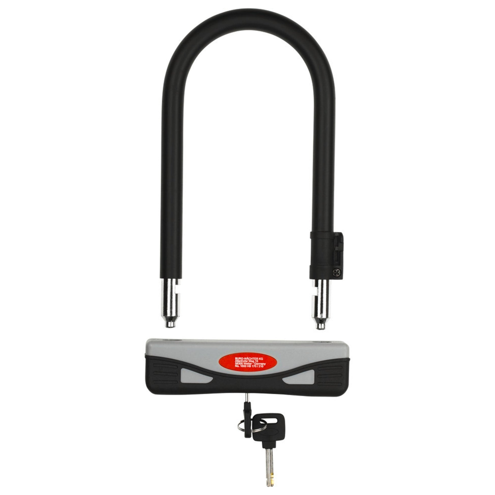 Bezeichnung: BURG-WÄCHTER Diebstahlschutz 1600 HB 170/210 Langbügelschloss 170 x 268 x 33 mm (B x H x T) Stahl, gehärtet/Kunststoff ummantelt schwarz/grau/rot