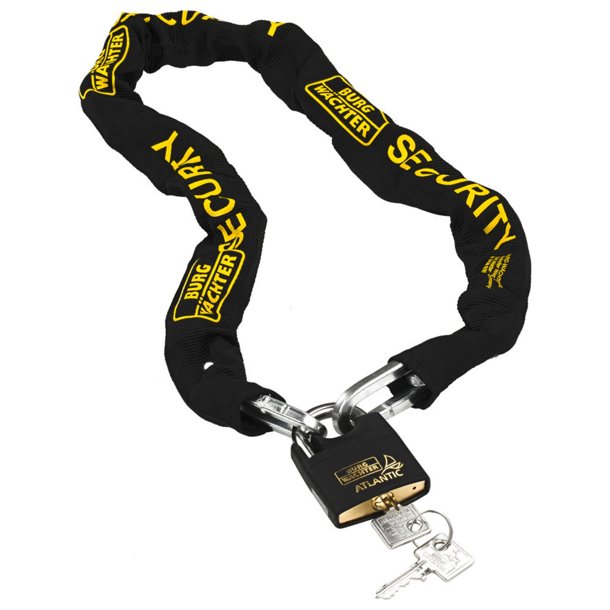 Bezeichnung: BURG-WÄCHTER Diebstahlschutz SKM 8/90/NI50 Kettenschloss 900mm 8mm Stahl, gehärtet/Textil schwarz/gelb