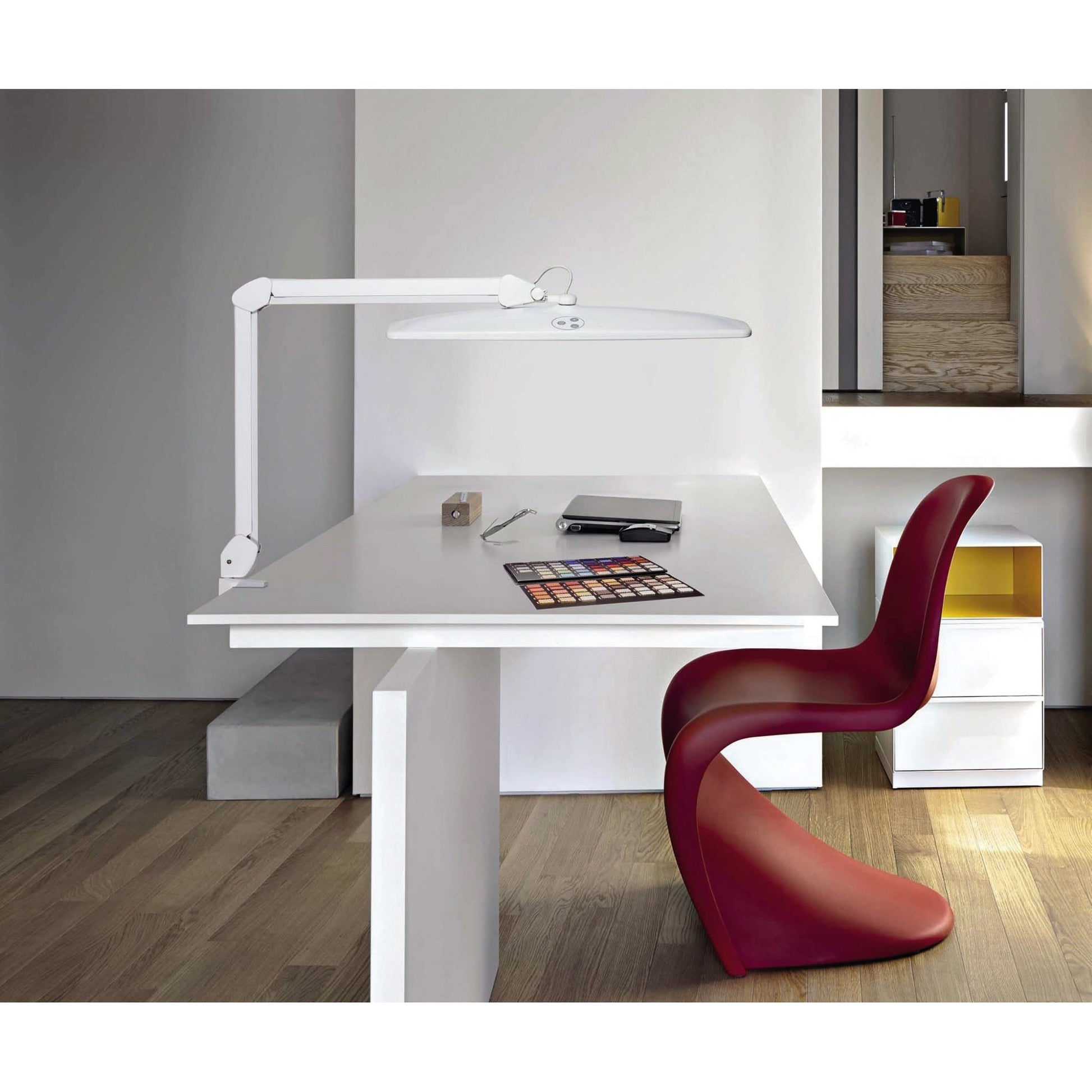 weißSpezialleuchte für anspruchsvolle Profis: Ideal für Arbeiten in Laboren, Werkstätten, technischen Büros und Ateliers. Lichtstarke Arbeitsumgebung fördert die Konzentrationsfähigkeit, besonders geeignet für präzise Arbeiten, Qualitätssicherung oder Montage. Blendfreies Arbeiten und homogene Lichtverteilung. Dreidimensional verstellbarer Leuchtenkopf für optimale Ausleuchtung des Arbeitsplatzes. Diffusor für geringen Schattenwurf. Touch-Bedienfeld am Leuchtenkopf für bequemes Dimmen, An- und Ausschalten. Technisches Sicherheitskonzept Made by MAUL. Dieses Produkt enthält eine austauschbare Lichtquelle der Energieeffizienzklasse E. Die Lichtquelle ist nur vom Fachmann austauschbar.
