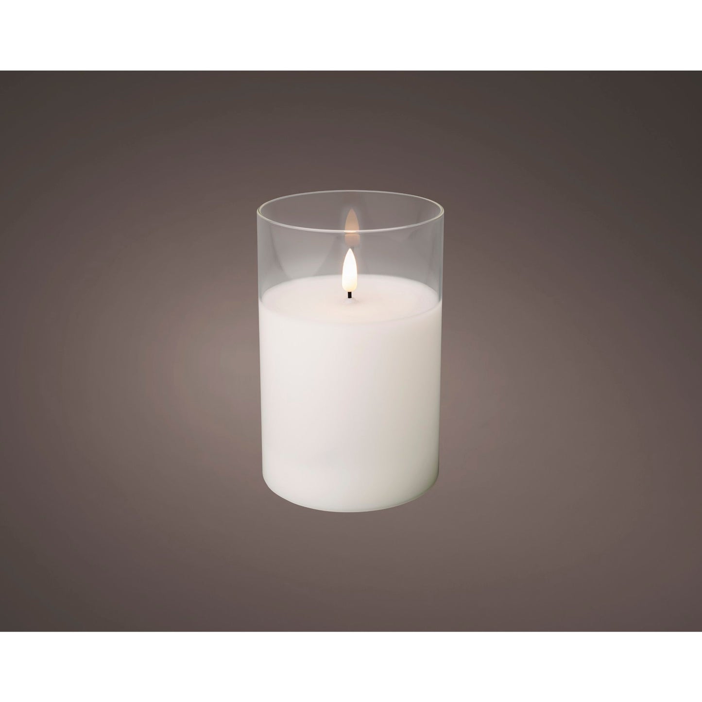 Bezeichnung: LUMINEO LED Kerze 10 x 15 cm (Ø x H) 250h Glas/Wachs weiß