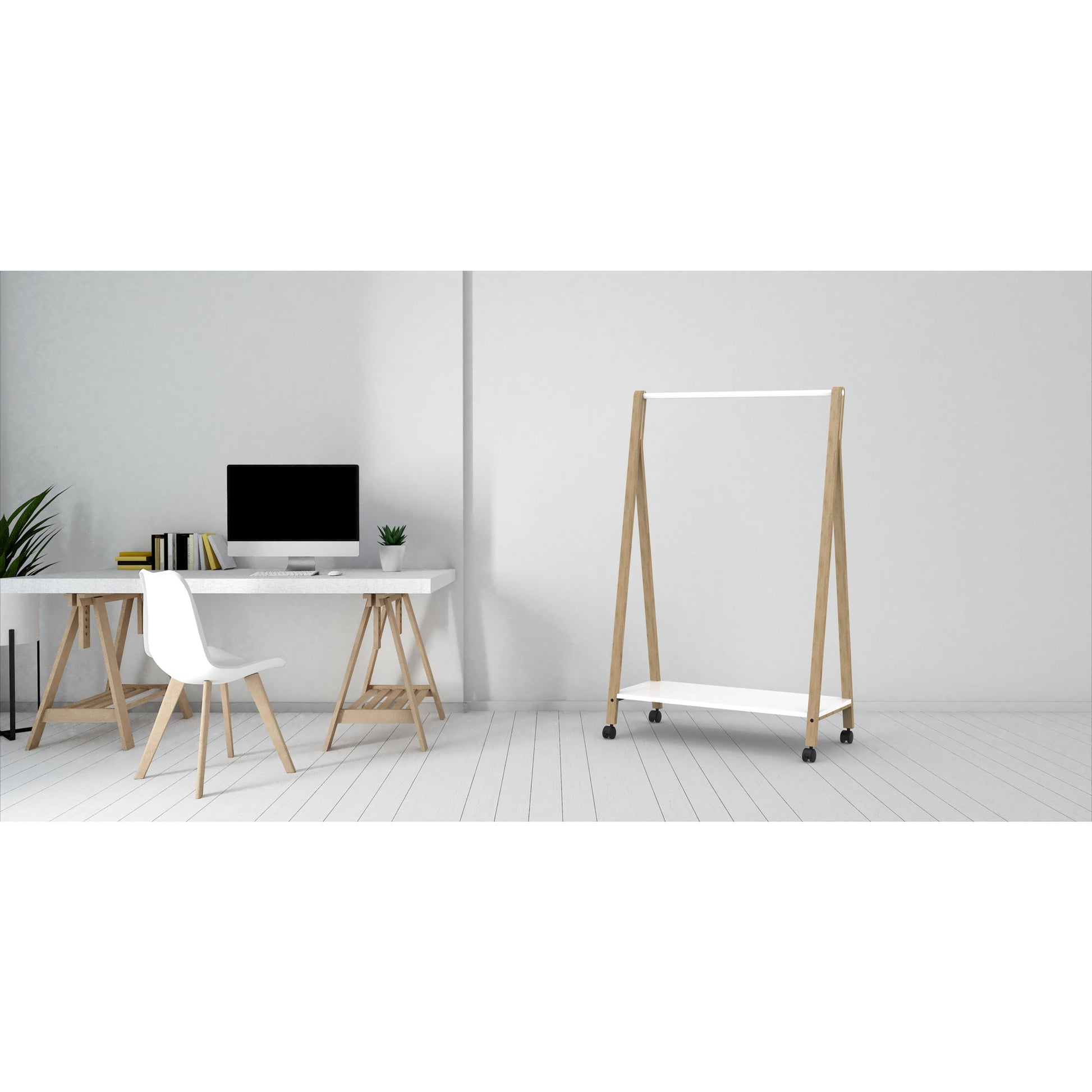 Bezeichnung: ALBA Garderobenständer PMSLEEK 94 x 149 x 47 cm (B x H x T) Stahl, epoxylackiert/Holz/MDF/Kunststoff, 100 % recycelbar buche/weiß