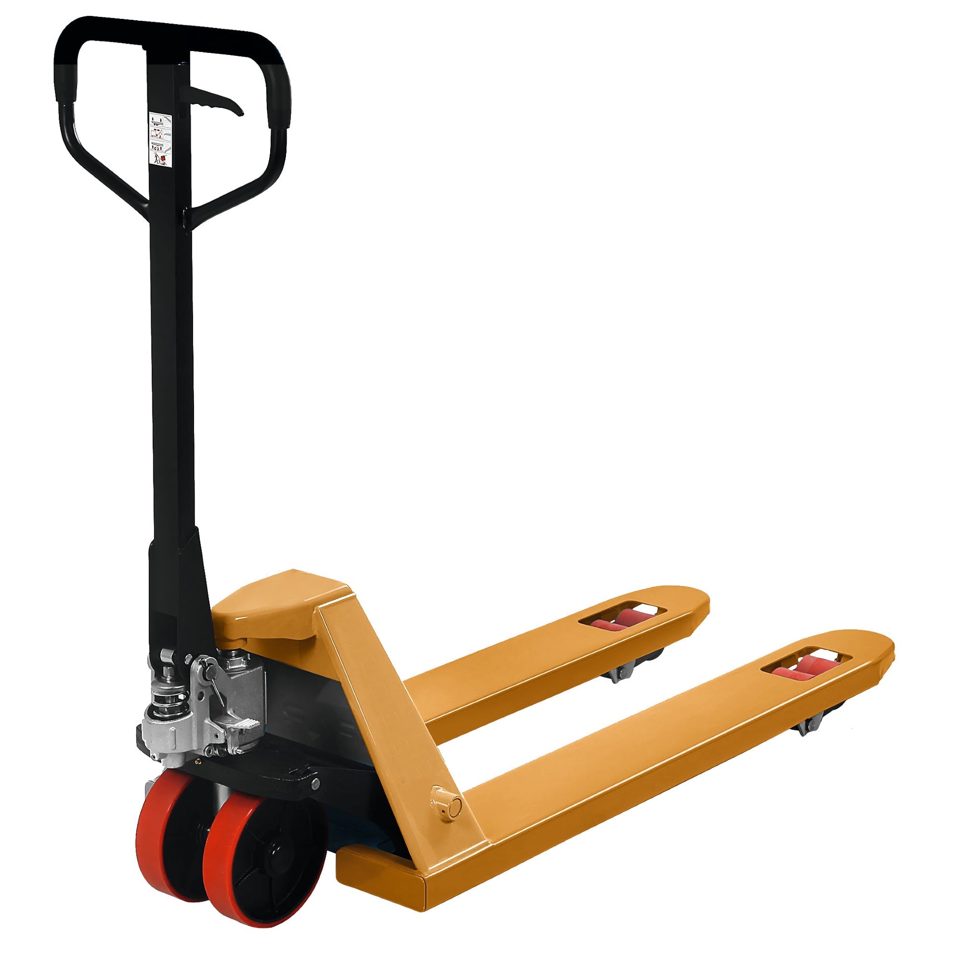 gelbDer Palettenhubwagen transportiert selbst schwerste Gegenstände spielendleicht und dank der gusseisernen Bereifung und kugelgelagerte Laufrollen macht er dies leise und unermüdlich. Die Transportgabeln sind aus robusten Material gefertigt und verfügen über eine Verstärkung an der Innenseite. Die Stützrollen lassen die Gabeln mühelos in die Querseite einer Palette eintauchen. Durch die „fast-Lift“ Technik der modernen Hydraulikeinheit, ist das zu transportierende Gut in nur wenigen Hubvorgängen auf der gewünschten Höhe. Mit „Anti-Slip“ Beschichtung. Bodenfreiheit von ca. 35-85 mm. Ergonomische Griffhöhe bei ca. 115 cm.